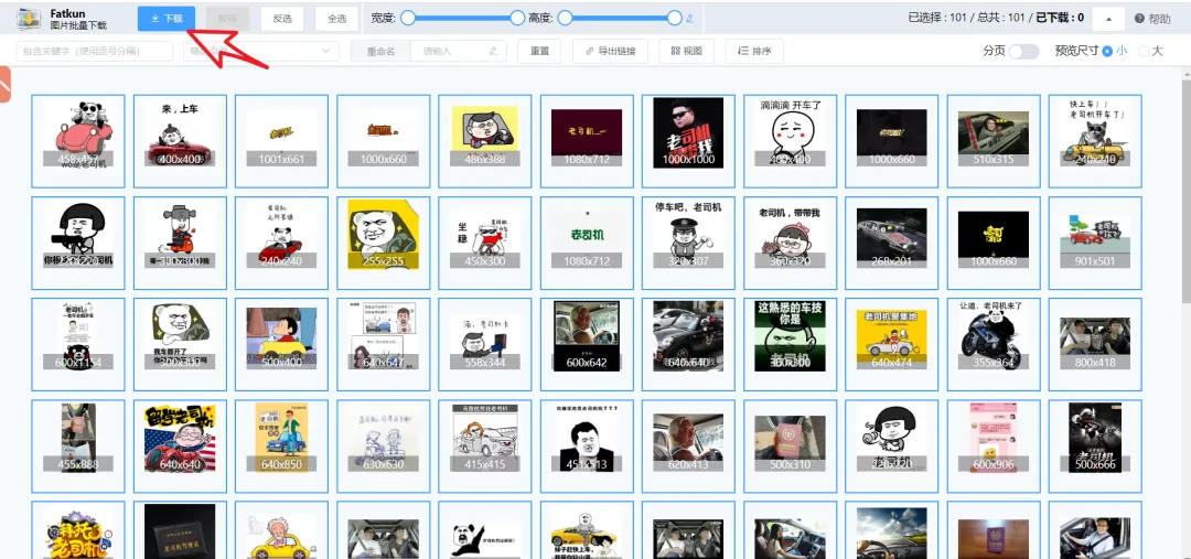 进入到了批量下载的页面里,默认情况下整个页面的图片是全选的,大家只要点这里的【下载】按钮即可。