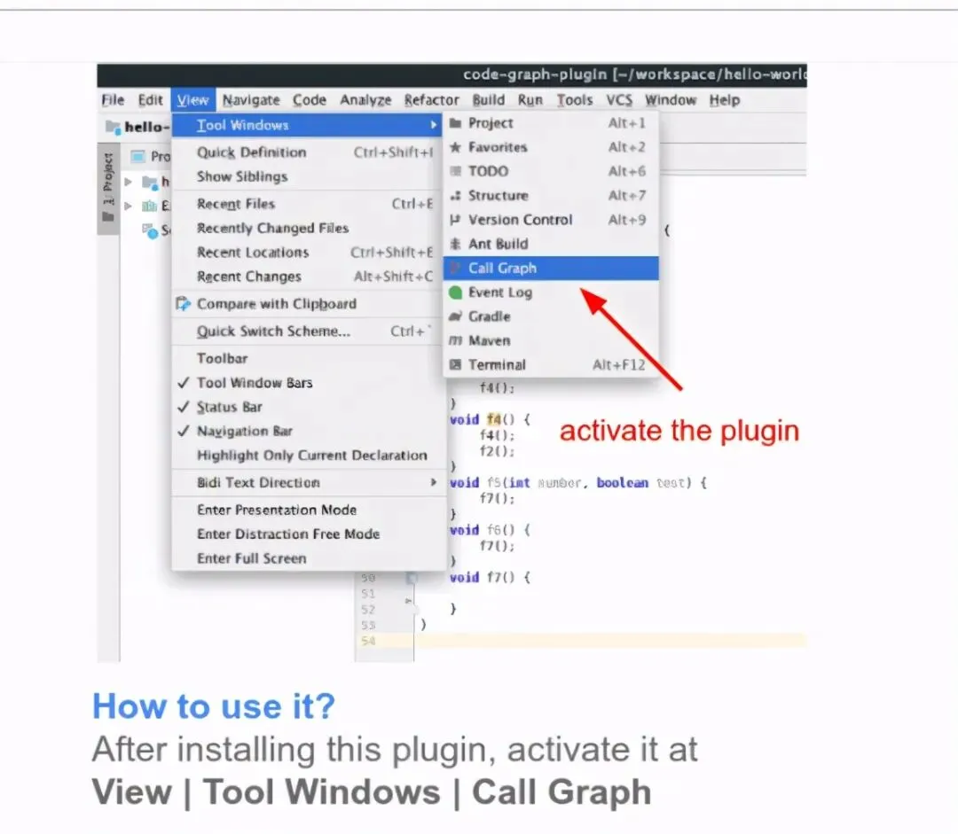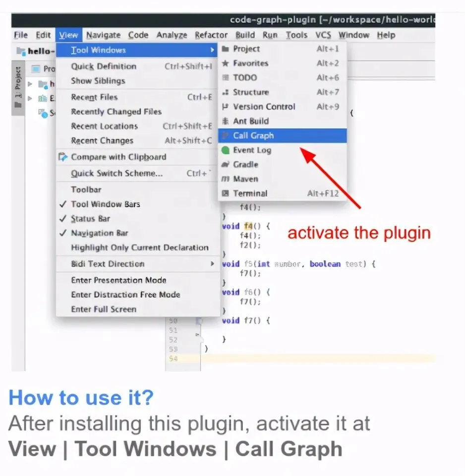 安装后,通过View – Tool Windows – Call Graph ,激活窗口