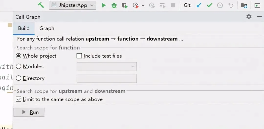激活后,需要先Build graph,让插件分析java代码,可以选择对整个工程或者针对某个项目。