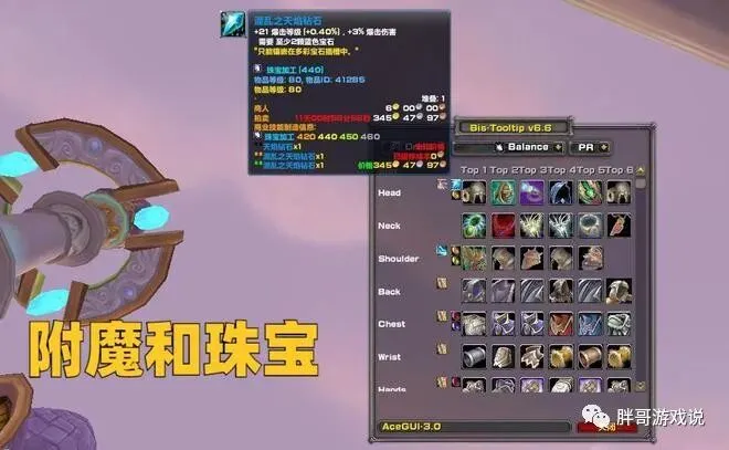除了BIS装备之外,这款插件还可以告诉玩家需要使用哪种附魔和宝石,同样是在查询列表,直接把鼠标放在上面就可以显示了。