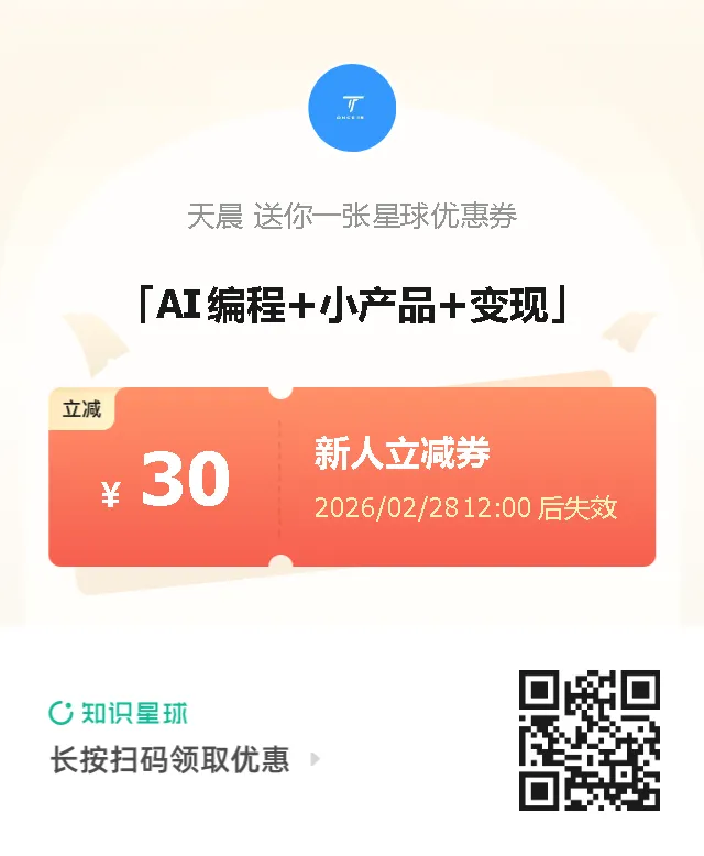 这趟旅程不会孤独。我会在星球里每天更新进度,分享好用的 Prompt、代码片段、踩坑记录。每个加入的成员都可以: