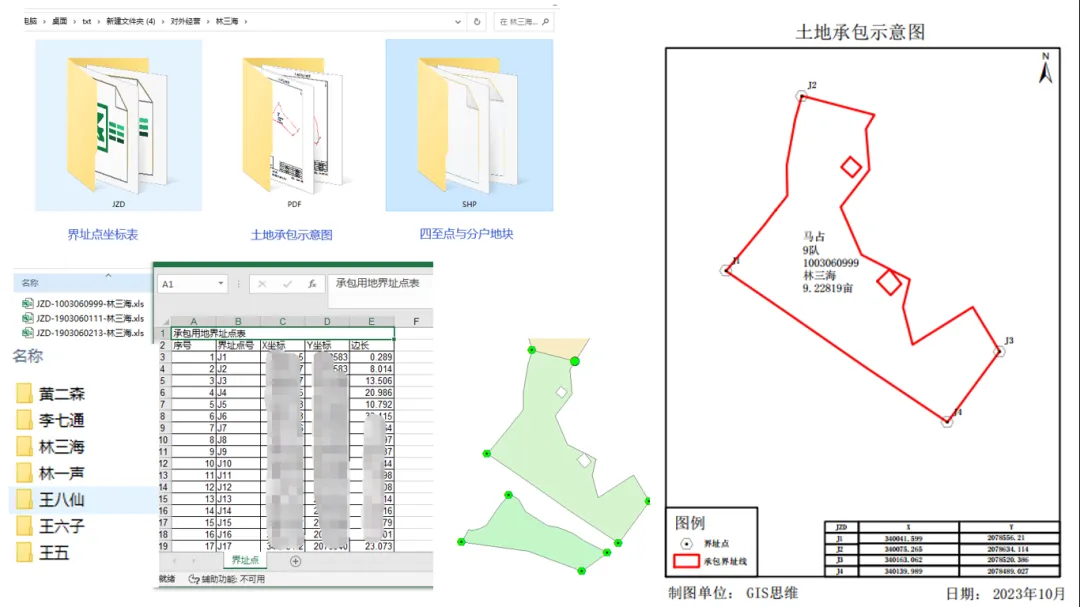 13、批量多图层土地承包分户输出(快速输出地块界址点表、地块分户图、四至点等)