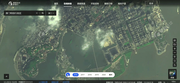 更新后的星图地球数据云2023版支持查看全国省会、直辖市和特别行政区2016年-2020年共5年的历史影像,数据精度0.8米。
