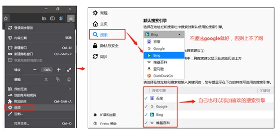 安装完后,打开Firefox可能出现上不了网的问题,这是由于默认搜索引擎为Google(国内还不能正常访问)所造成的,更改下搜索引擎就好。