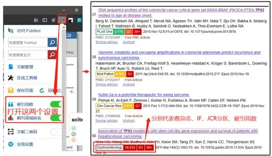 需要注意下,打开“被引用数”和“期刊领域排名”这两个设置,才可以在PubMed上看到这些信息。