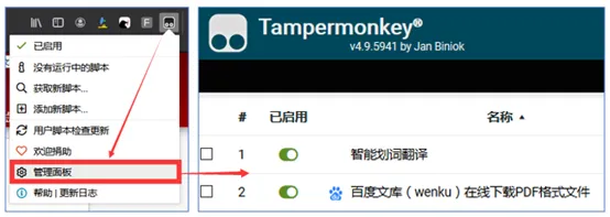 安装完成后,可通过Tampermonkey的管理面板进行查看。