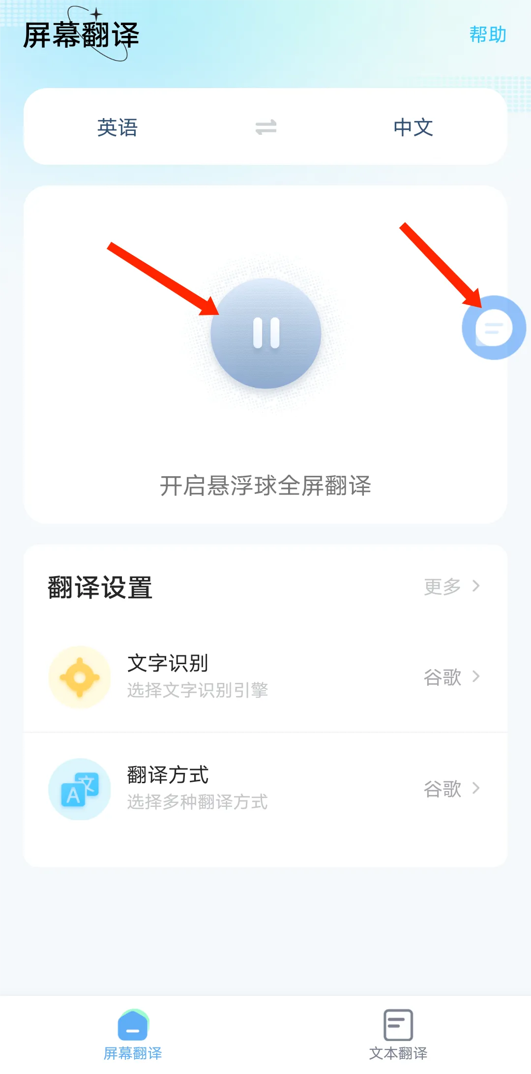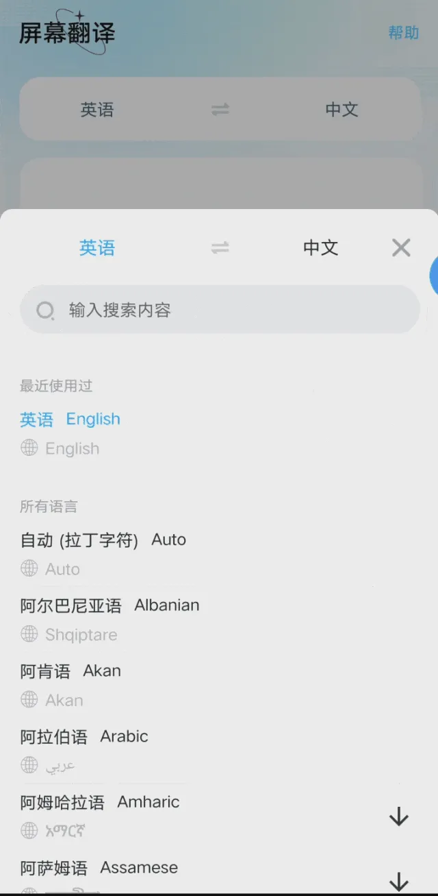 而软件最主要的是支持屏幕翻译,它可以手机任意界面(包括APP)进行一键翻译。