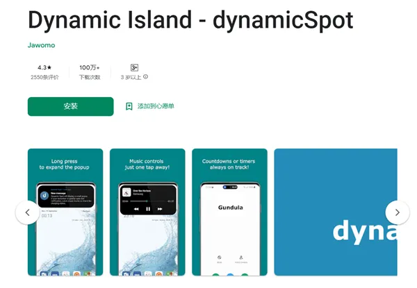 目前,安卓山寨版灵动岛“dynamicSpot ”,在Google Play的下载量已经突破100万次。