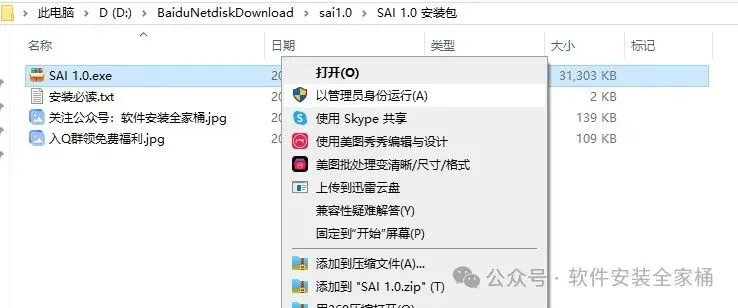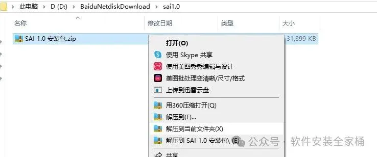 1.1.打开下载的软件安装包,鼠标右击【SAI 1.0】压缩包,选择【解压到当前文件夹】。