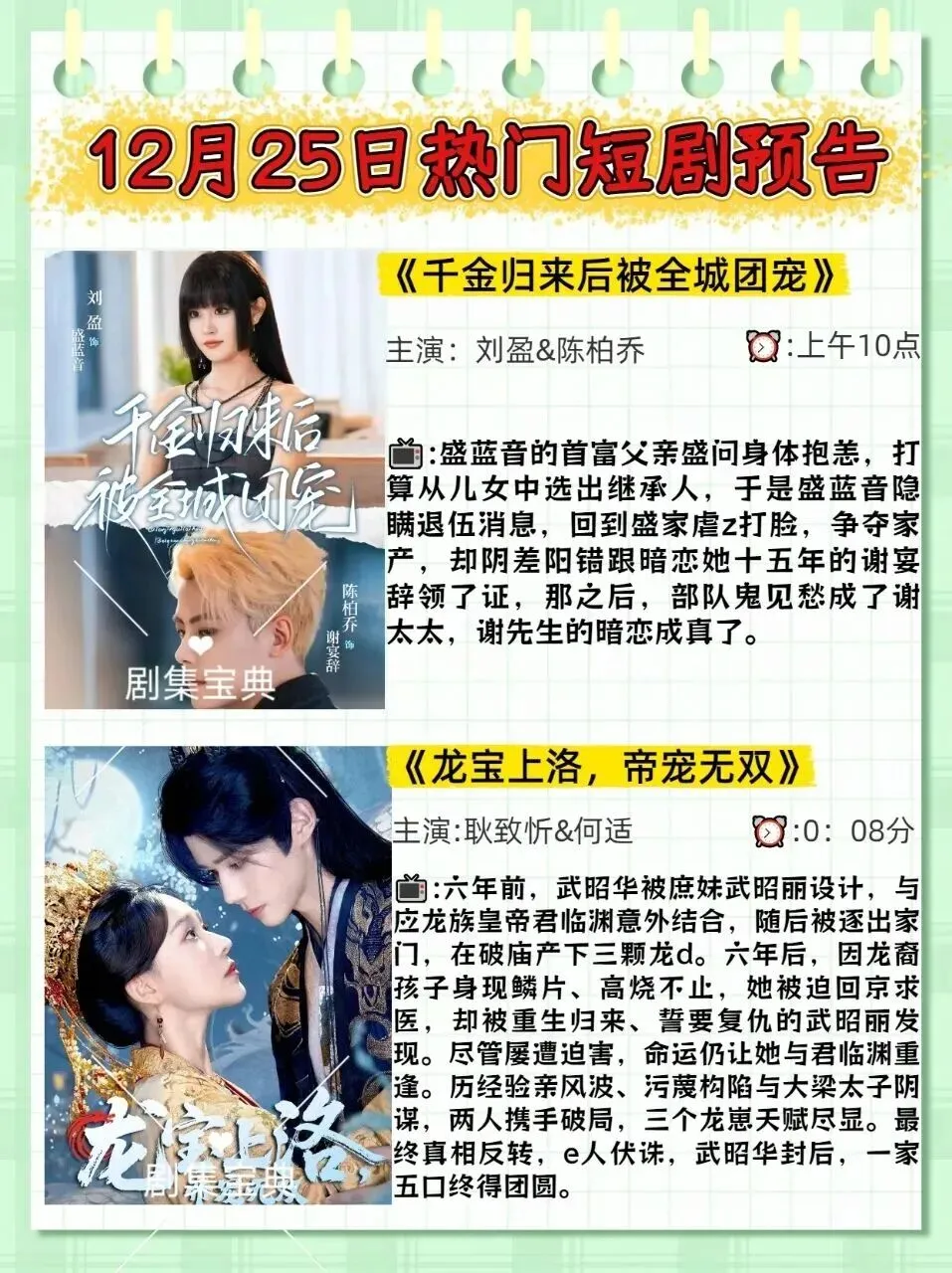 12月25日热门短剧推荐预告!