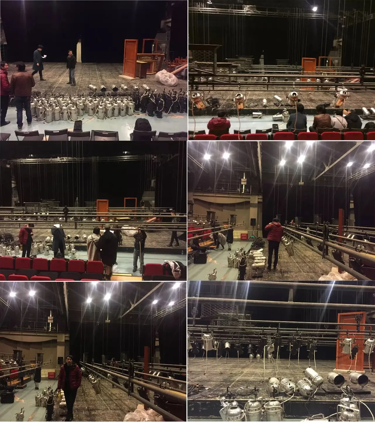 今天晚上,我们也赶赴现场,穿梭于鼓楼西剧场的吊杆之间,进行着演出之前的装台工作。