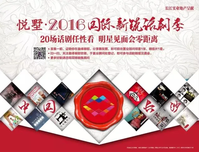 盈峰翠邸·悦墅总冠名的“2016中国•长沙国际新锐话剧季”正在盛装上演。新锐话剧季,于2016年6月一直持续到9月底,共有11家国内外知名剧社剧团,25场话剧在湖南大剧院上演。