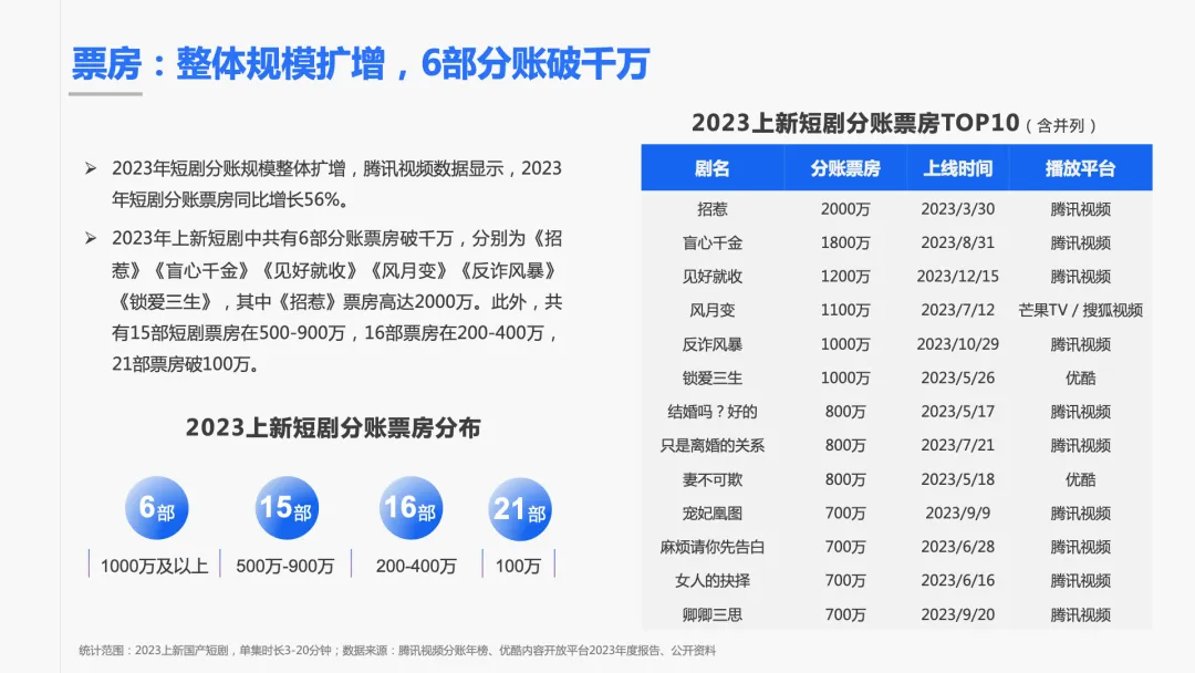 之所以这么说,是因为回首2023,腾讯视频在微短剧领域取得了亮眼的成绩。「2023年微短剧行业年榜腾讯视频头部占比超八成,『十分剧场』作为微短剧第一品牌持续创新引领。」