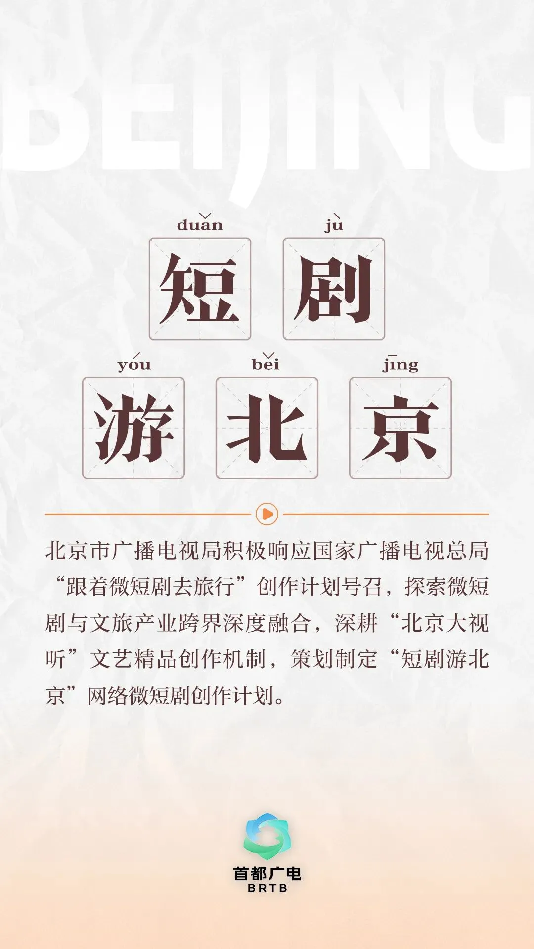 为了进一步贯彻落实全国宣传思想文化工作会议、中央经济工作会议和全国宣传部长会议精神,积极响应国家广播电视总局“跟着微短剧去旅行”创作计划,探索微短剧与文化和旅游等产业跨界深度融合,北京市广播电视局深耕“北京大视听”文艺精品创作机制,本着“找准选题、讲好故事、拍出精品”的原则,策划制定跟着微短剧去旅行·“短剧游北京”创作计划工作方案,大力推动“微短剧+北京文旅”融合创新。