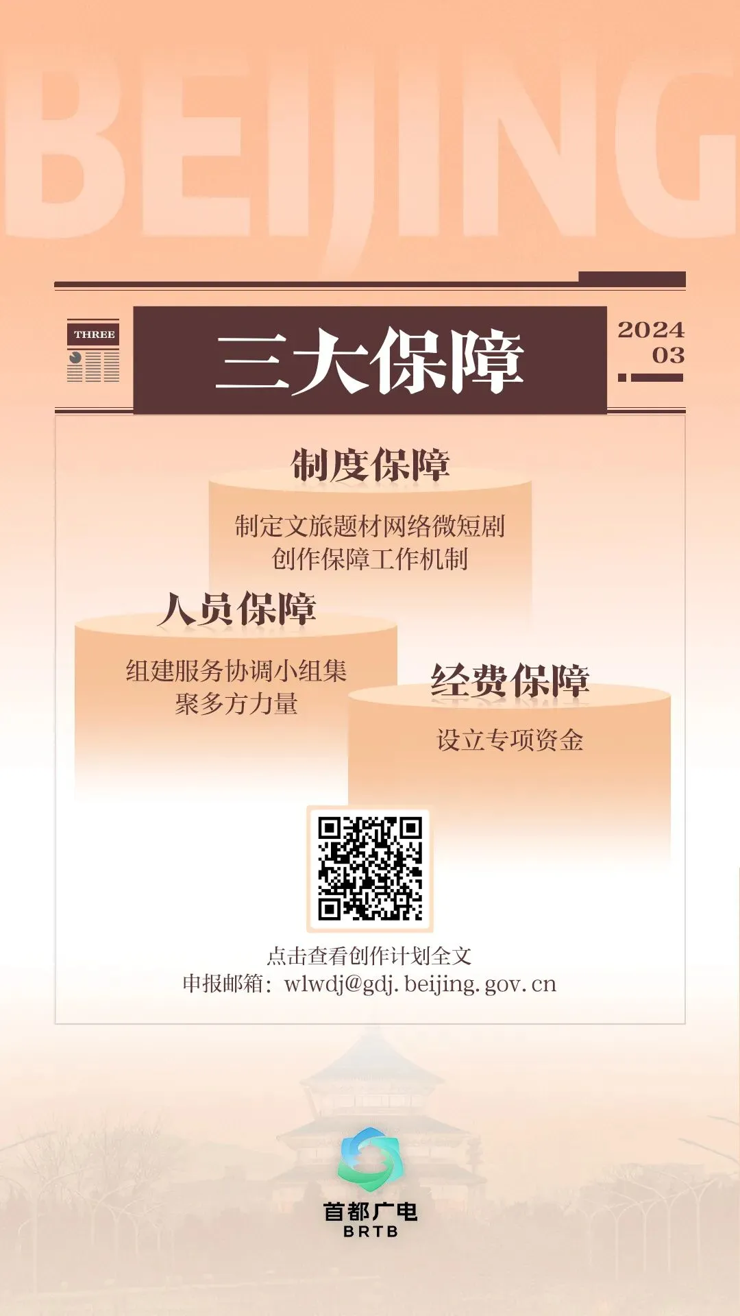 (二)经费保障。设立专项资金支持创作活动,做好2024年度北京广播电视网络视听发展基金的规划分配,对文旅题材网络微短剧予以倾斜侧重,保障网络微短剧创作工作有序开展。