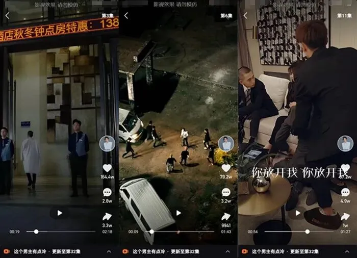 可以看到的是,从简单的土味段子,到集集都有小高潮的内容,微短剧的剧情正在进一步走向精细化,有了更多投资、更专业的演员与制作团队参与进来之后,微短剧也开始向精品化、专业化的方向迈进。