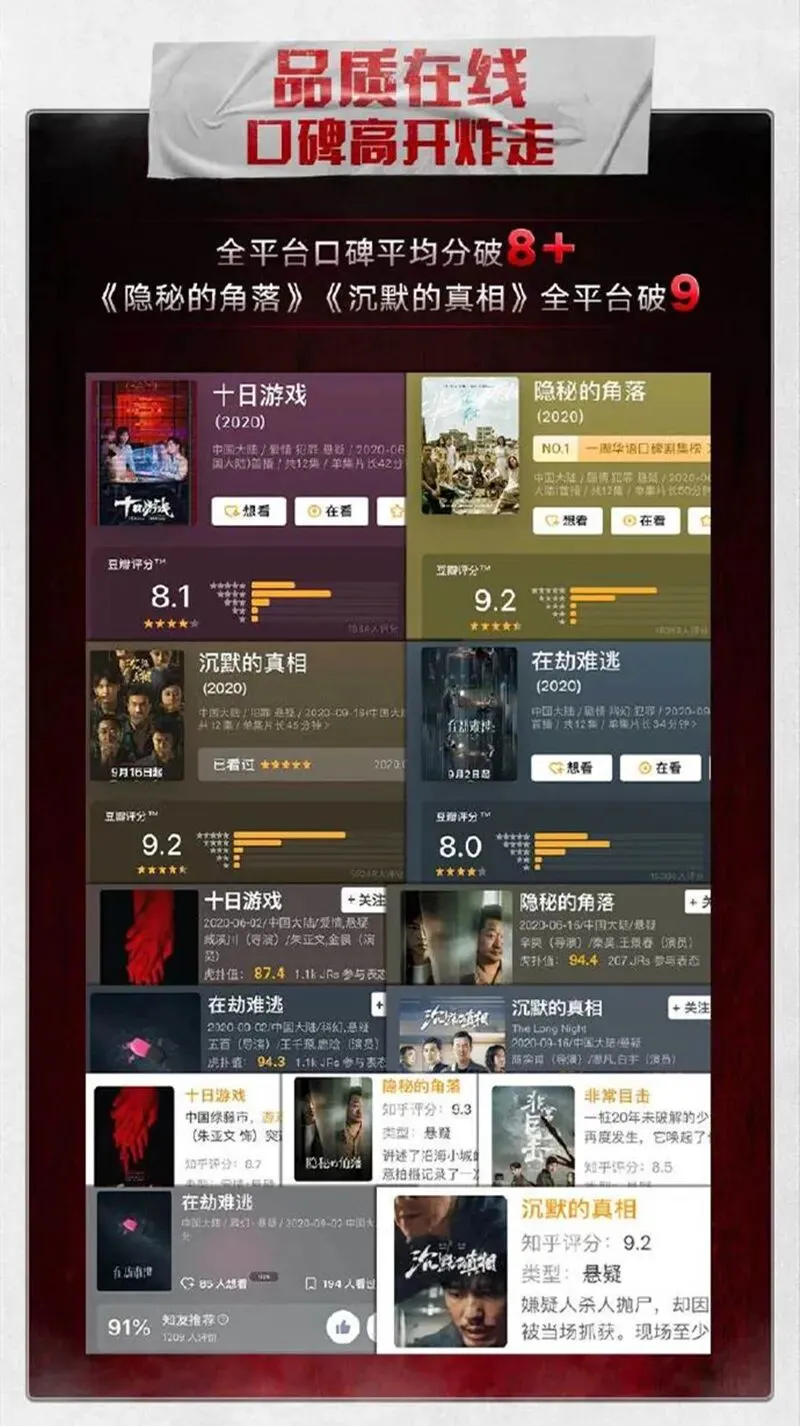 相对头部长剧集,短剧集成本较低,适合中小型新影视公司和新创作者入局求变求新。今年《隐秘的角落》一举成为国产悬疑剧标杆,其制作方万年影业成立于2016年,近几年凭借《无证之罪》《隐秘的角落》这样的精品悬疑短剧,成功在网剧市场中占据一席之地。而2018年成立的恒星引力,两年内便凭借行业剧《怪你过分美丽》赢得好口碑。《怪你过分美丽》虽然是人物众多、剧情复杂的行业剧,但篇幅也未超过40集,紧凑的剧情颇受好评。