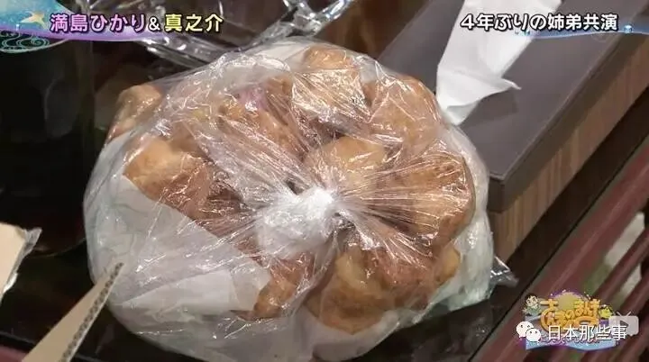 带来妈妈特意给打包的冲绳炸点心送给秋刀鱼吃(3人份)。并表示:我们已经把这辈子的量都吃过了,吃伤了!(那就不要当土产带来送人啊喂)