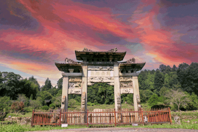 唐崖土司城址现存唯一完整的地面建筑,该坊通高7.15米,面阔8.4米,四柱三门三楼式,全石仿木构,是唐崖土司城的标志性建筑,也是现存土司遗址中等级最高、体量最大的礼制性建筑。