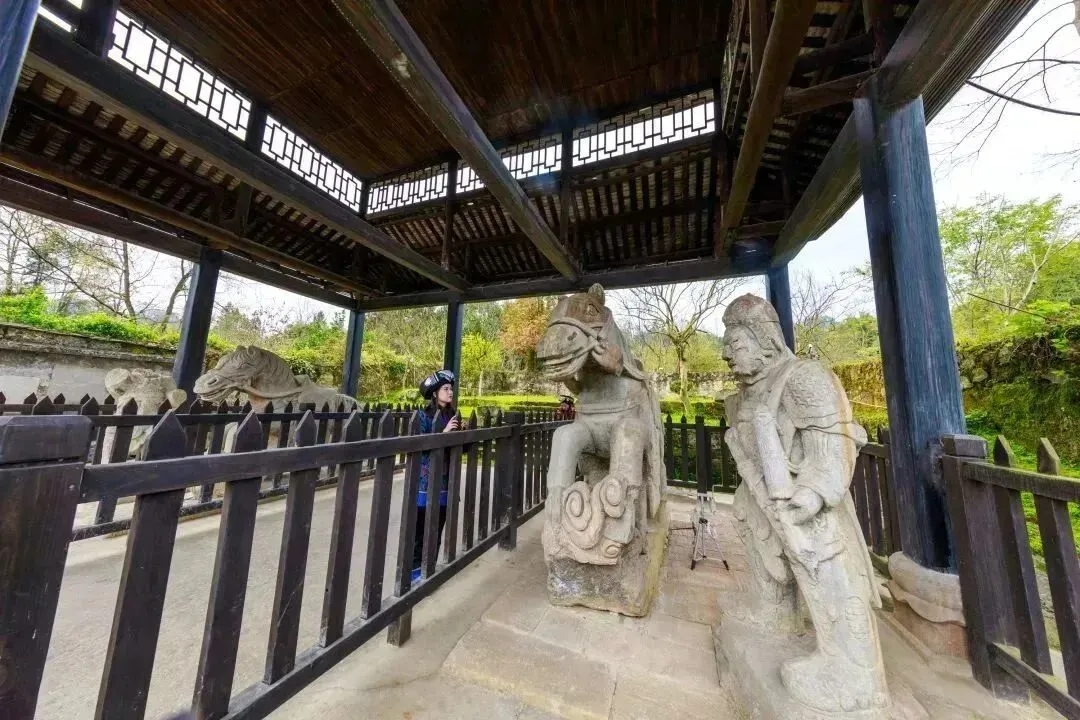 又称张桓侯庙,主祀三国名将张飞。始建于明万历辛亥年(1611),清乾隆、光绪年间重建,三进院落布局,现仅存建筑基础和一对石人石马,石人石马造型奇伟雄观,惟妙惟肖,堪称明代石雕的典范。