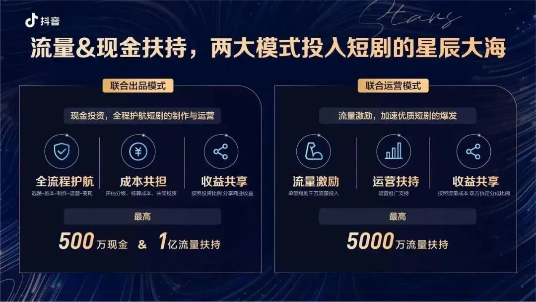 1月18日,抖音举办精品微短剧“辰星计划”发布会,面向影视公司、媒体机构、MCN机构以及个人创作者,宣布将给予精品微短剧资金和流量扶持。