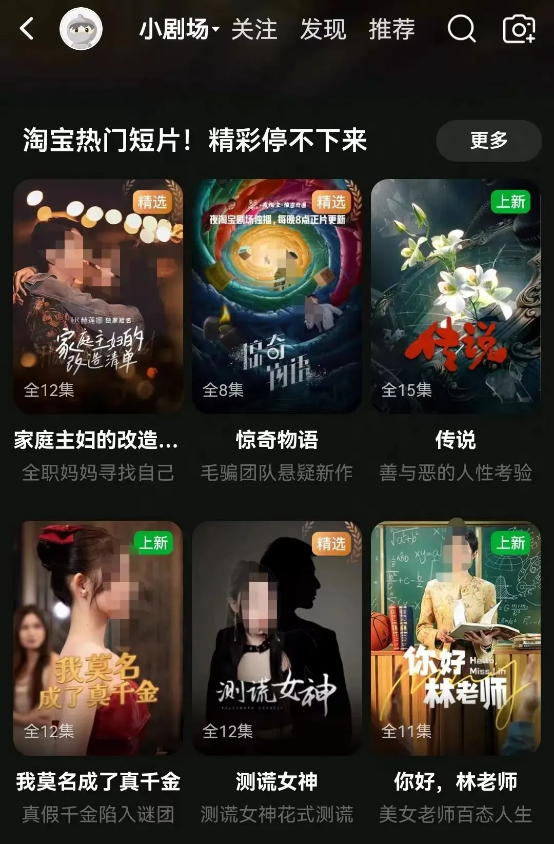 比如淘宝在“逛逛”板块的二级页面,专门开辟了一个名为“小剧场”短剧板块,集合了各类短剧内容和经典影视剧解说。
