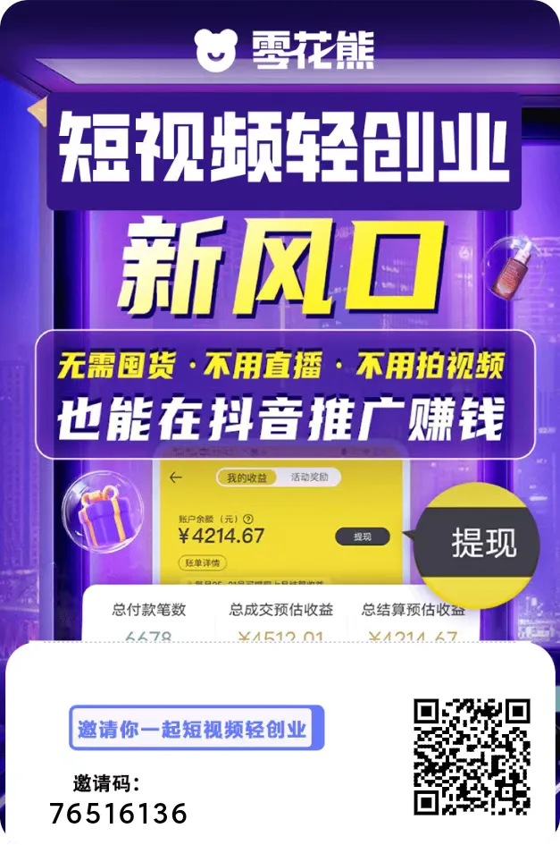 本文最后更新于2025-12-31,某些文章具有时效性,若有错误或已失效,请在下方留言或联系老夜。 新手必看:30秒搞定一天短剧灵感 30秒教你做分成80%的短剧任务,今天发明天就能看收益。 粉丝不够有陪跑专员给你涨粉,抖音会教你怎么快速千粉 领取视频可同时发视频号 抖音号 快手号。 以下视频来源于 思思日常生活 已关注 关注 重播 分享 赞 视频详情 推荐这个宝藏APP,一站式省钱、变现综合赋能平台!短剧,带货,小说,网购返现!统统帮你解决,无需剪辑拍摄!一键领取成品素材! 应用市场搜索【零花熊】下载注册 邀请口令:76516136