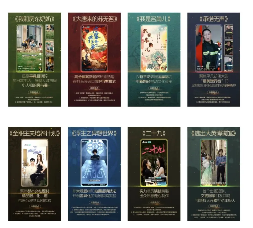 此次,抖音携手重量级媒体机构,2024年将围绕“向阳篇、向善篇、向美篇”三大主题、“致梦想、致青春、致温暖、致振兴、致国风、致想象”六个方向,共创精品微短剧,可谓是真正做到提质增效,促进行业健康长远地发展。
