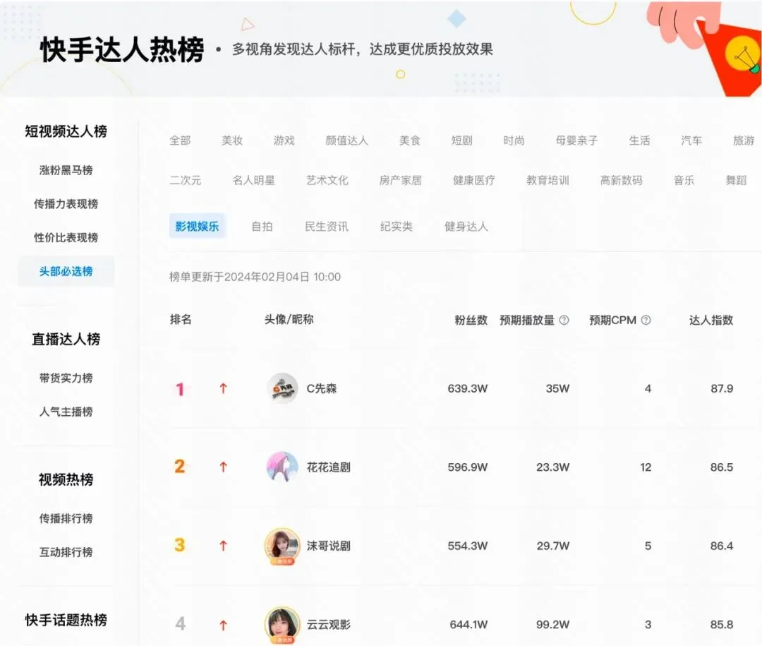 达人选择也是影响营销效果的关键一步。聚星影视综达人数量多,涵盖不同量级的达人。如何从海量达人池中挑选出匹配短剧传播需求的达人,也是达人宣发的重要命题。