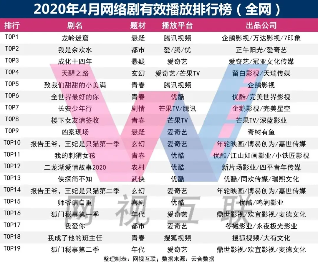 网视互联(ID:wxs360)根据云合数据提供的有效播放数据,整理出了4月份网剧有效播放排行榜。