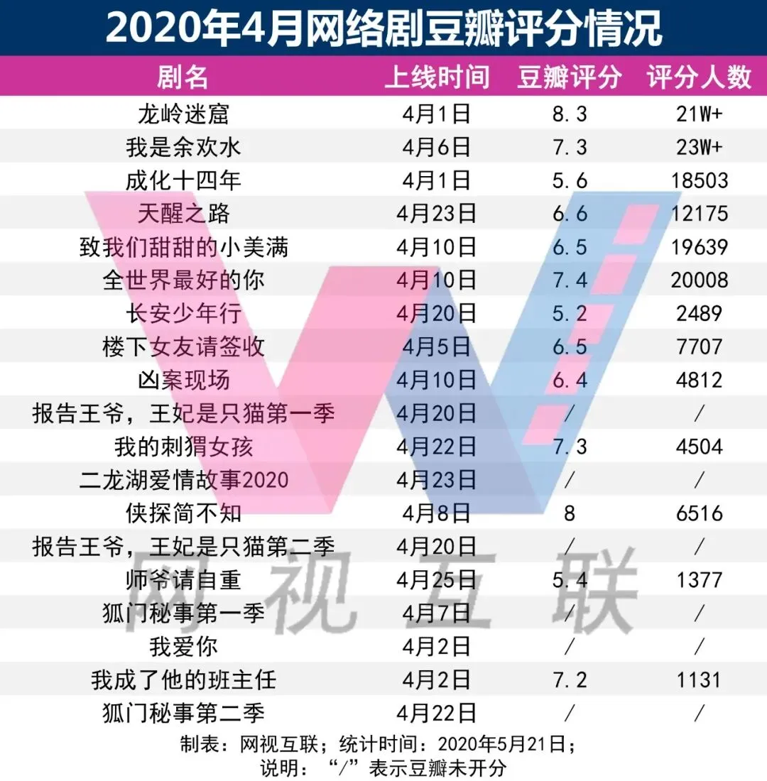 随着各行各业复工、复业,4月份视频网站流量下滑,但在《龙岭迷窟》和《我是余欢水》的带动下,4月份网剧流量却表现得相当稳定,甚至出现了逆势上涨的态势。