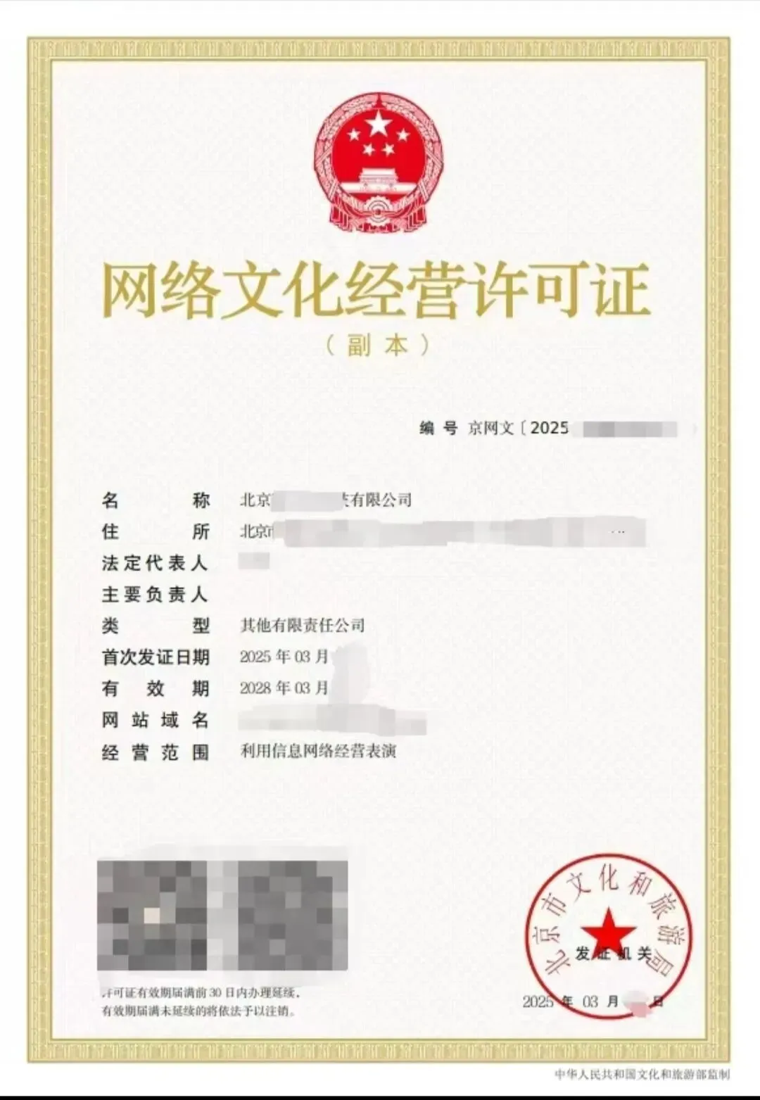 【网络文化经营许可证,简称“文网文”】