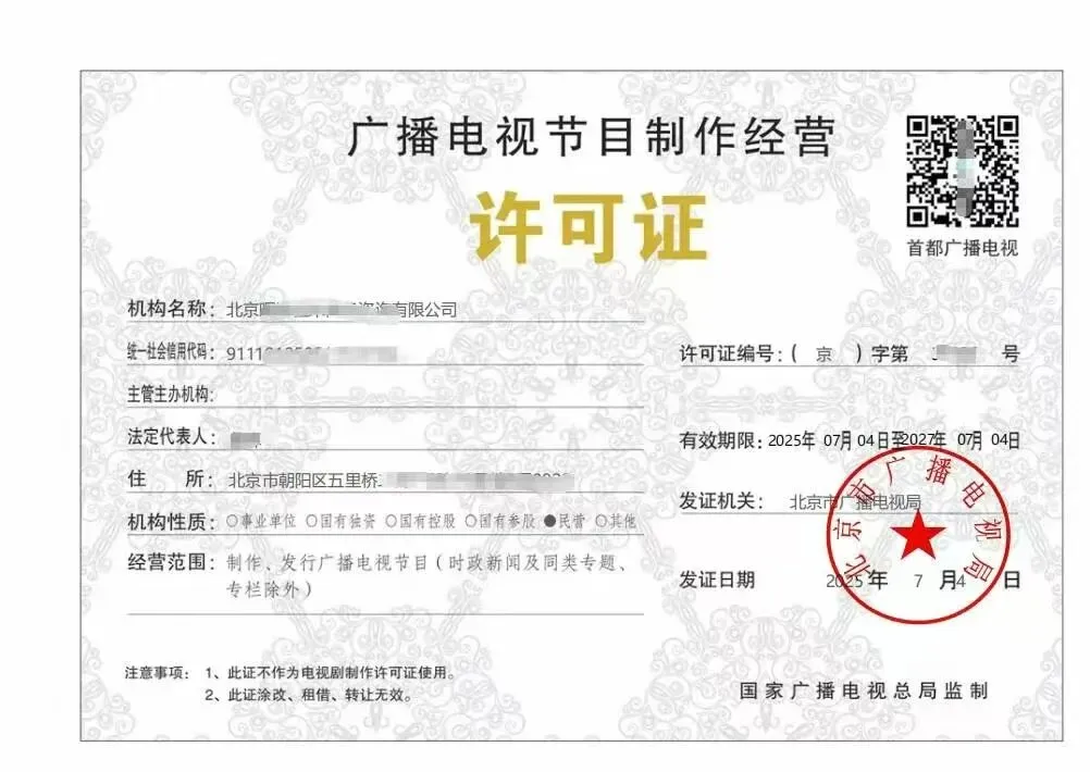 这个证主要是用于拍摄短片短剧,专题专栏或者线上录制视频办理