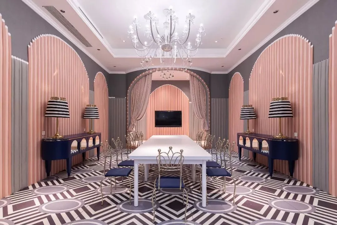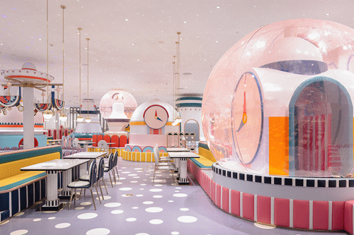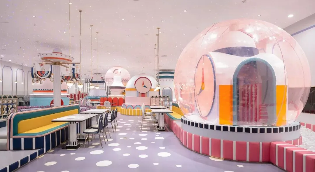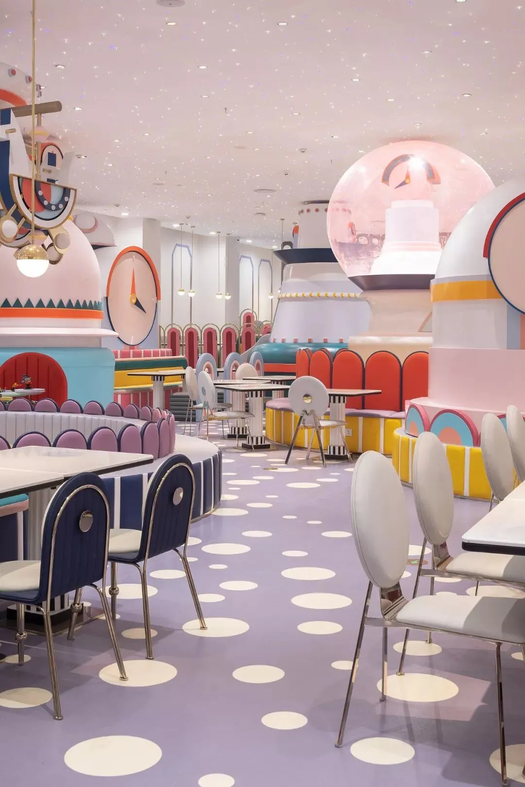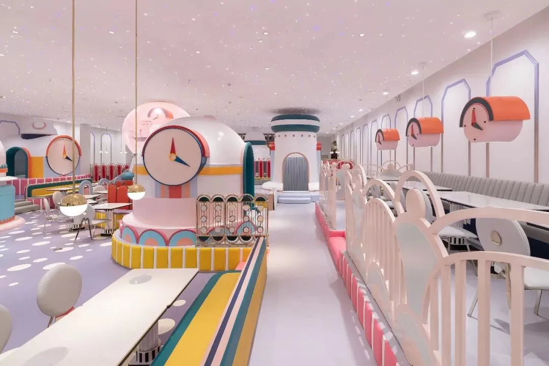 整座餐厅就像是被渲染成彩色童话梦境,马卡龙般的粉系色彩,使得整座餐厅都充满了浪漫的气息。
