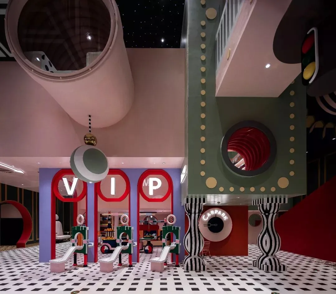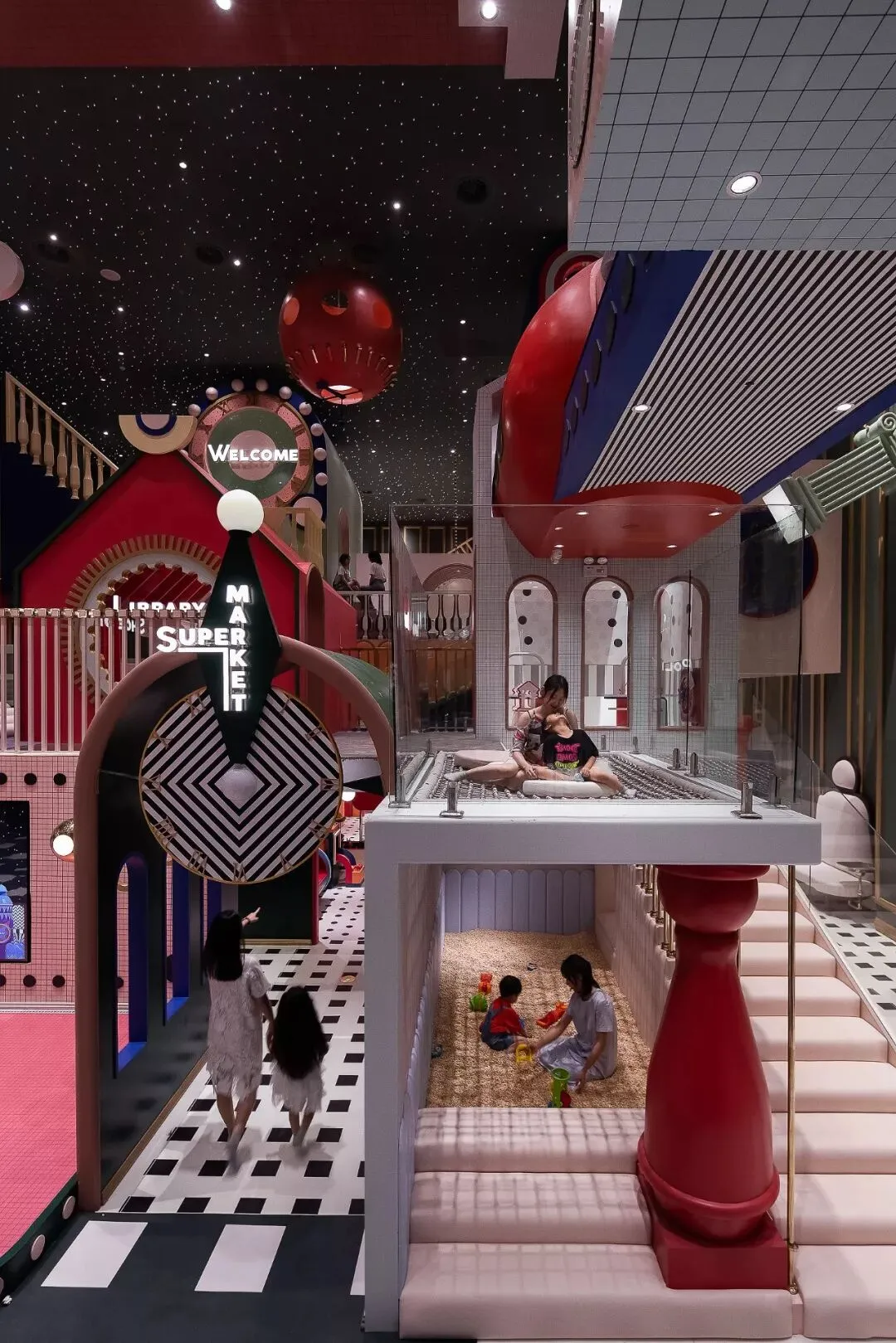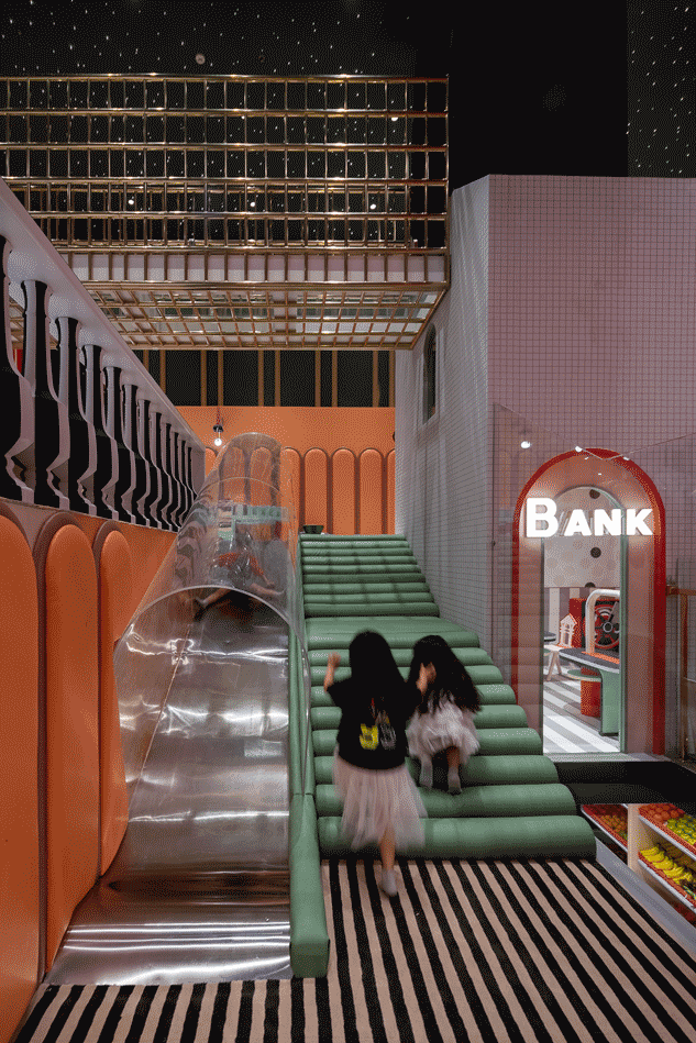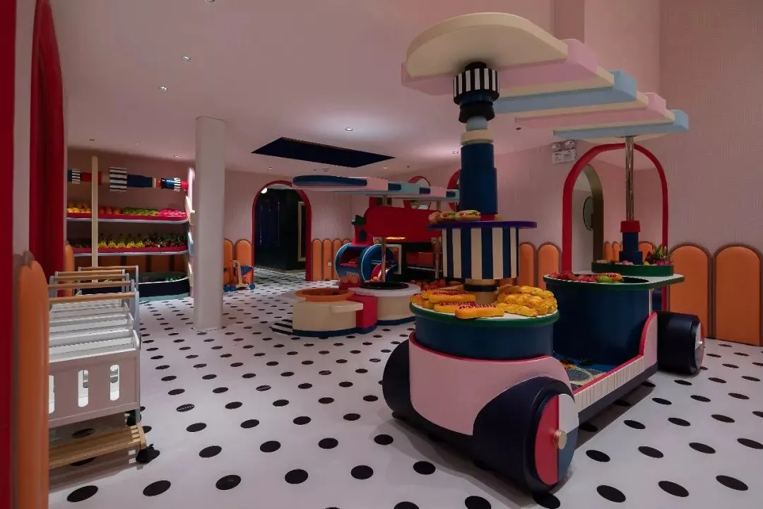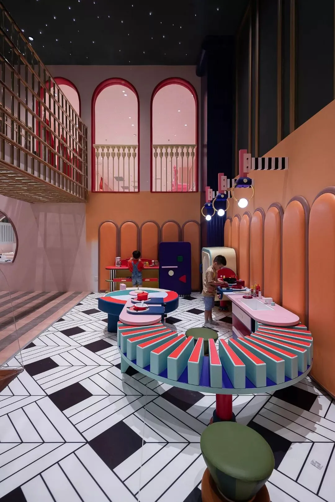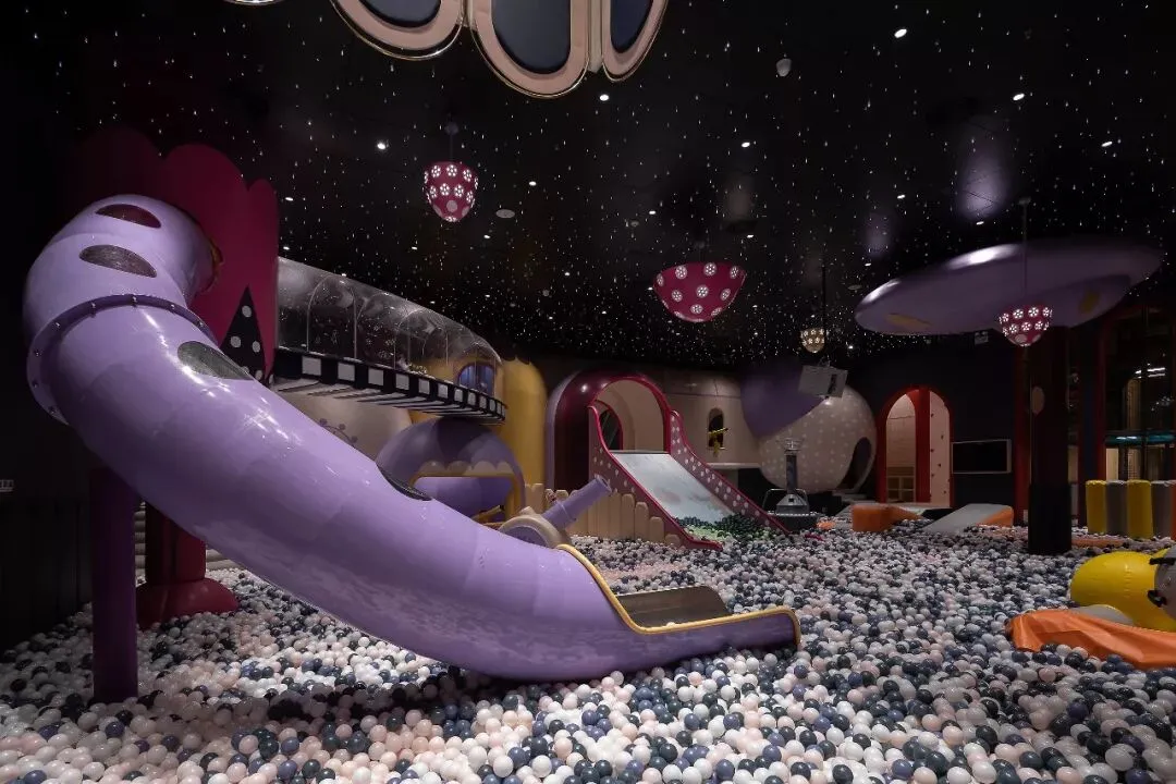 高低错落的游戏设施,五彩斑斓的墙面,整体都透露着一种童趣感,让人迫不及待的想要融入其中。