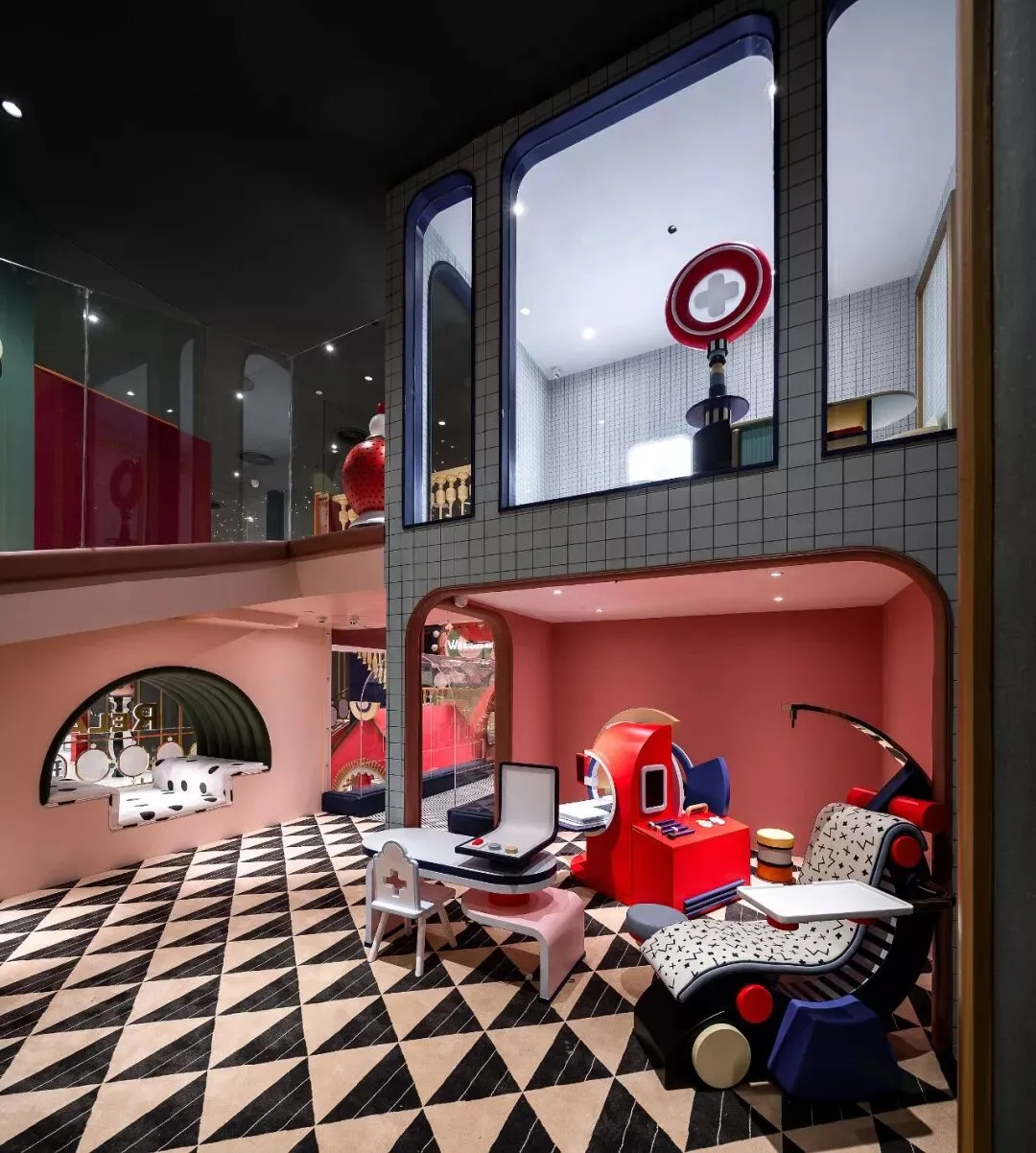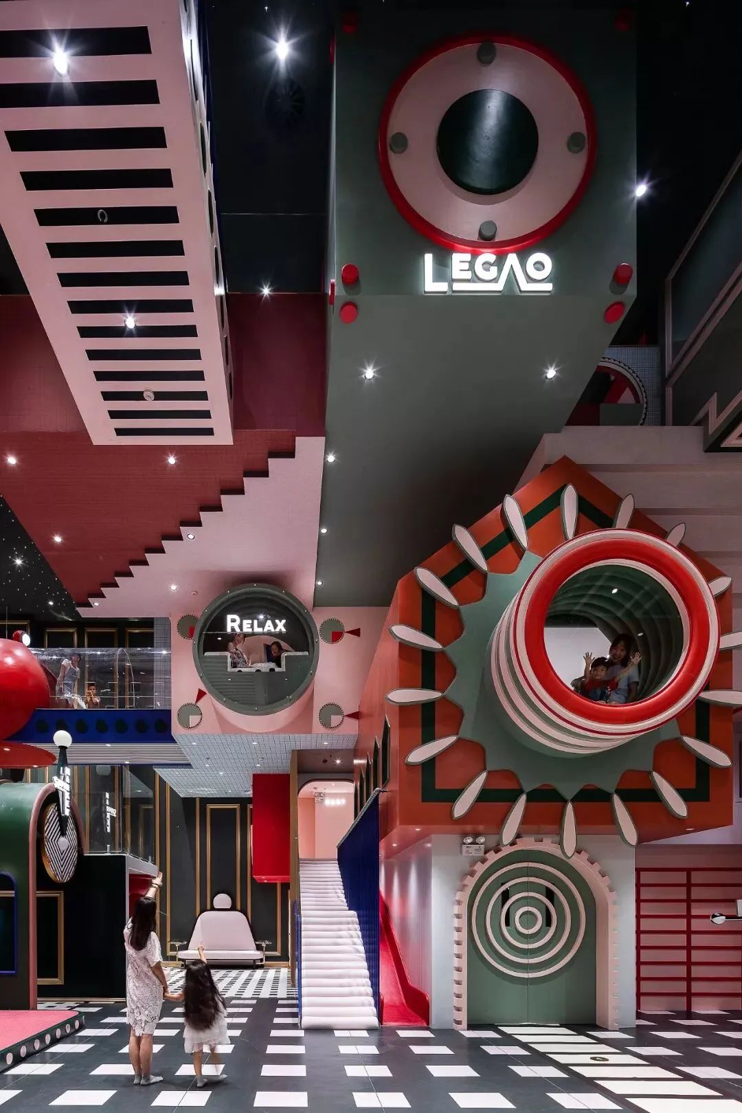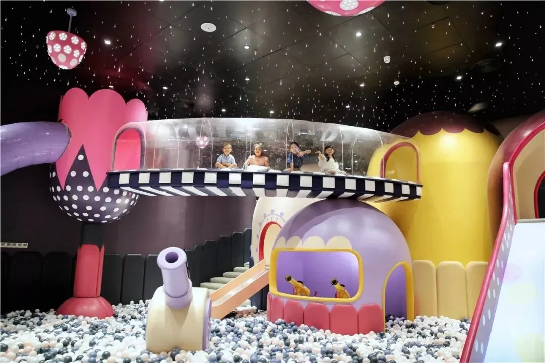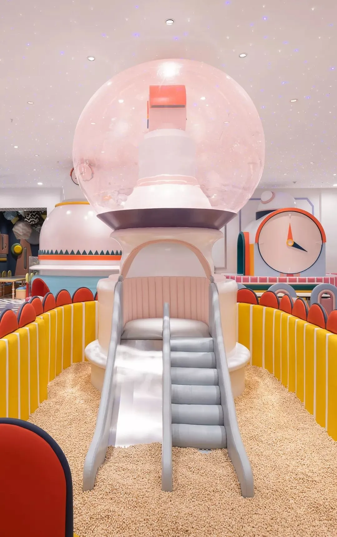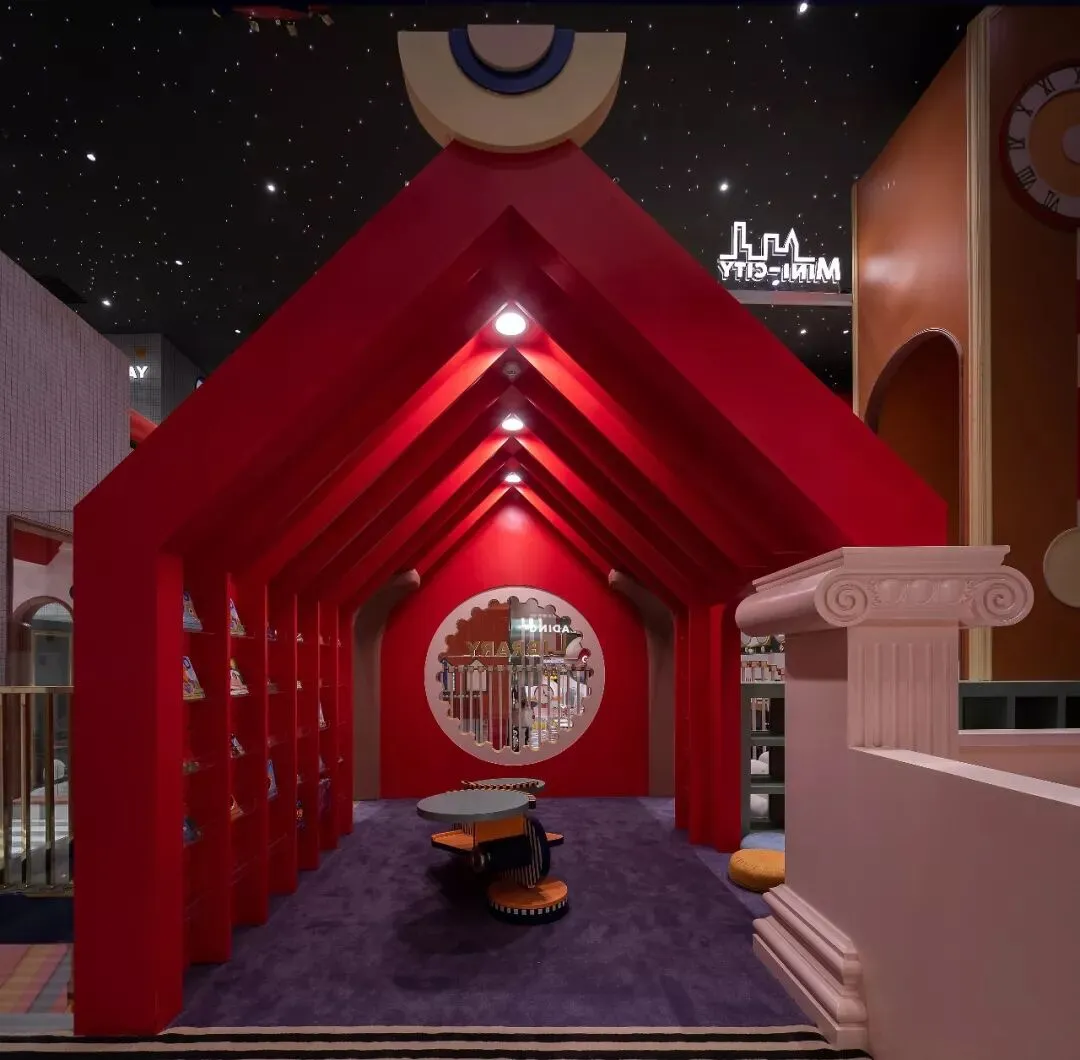高低错落的游戏设施,五彩斑斓的墙面,整体都透露着一种童趣感,让人迫不及待的想要融入其中。