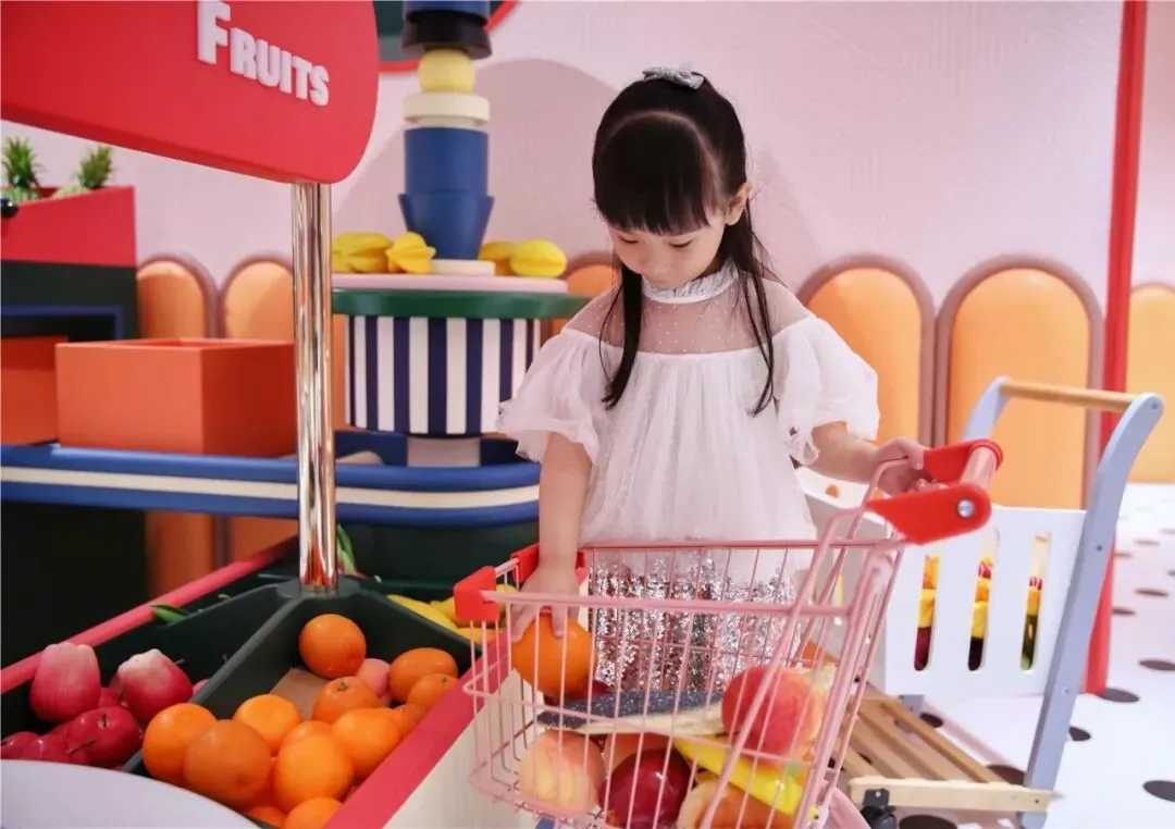 在这个微型超市里,有水果、蔬菜、小推车,平时超市里能看到的这里也都有,宝宝们可以挑选喜欢的东西买回家。