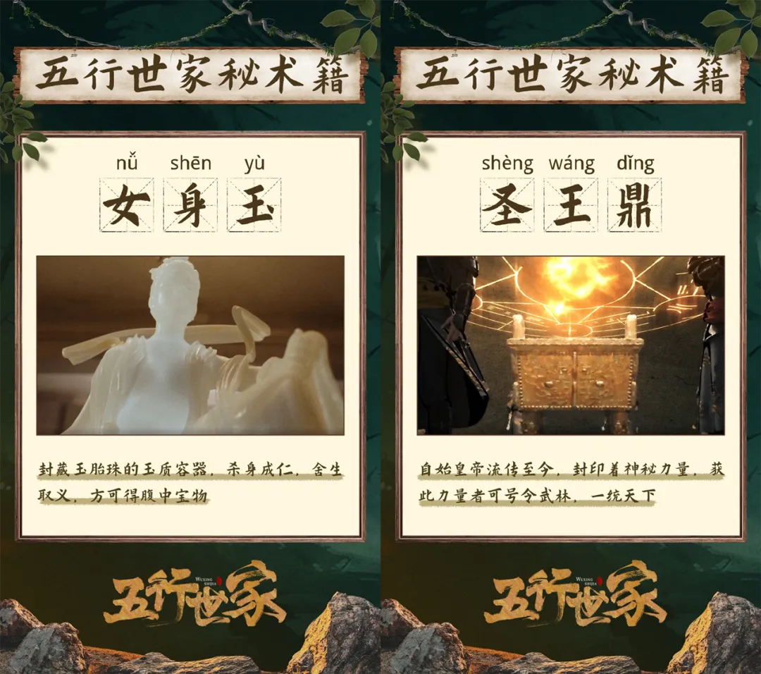 剧集的故事主线由各大势力争夺五行世家所保管的宝物“圣王鼎”展开,但是五行世家的人并没有一股脑全站出来。