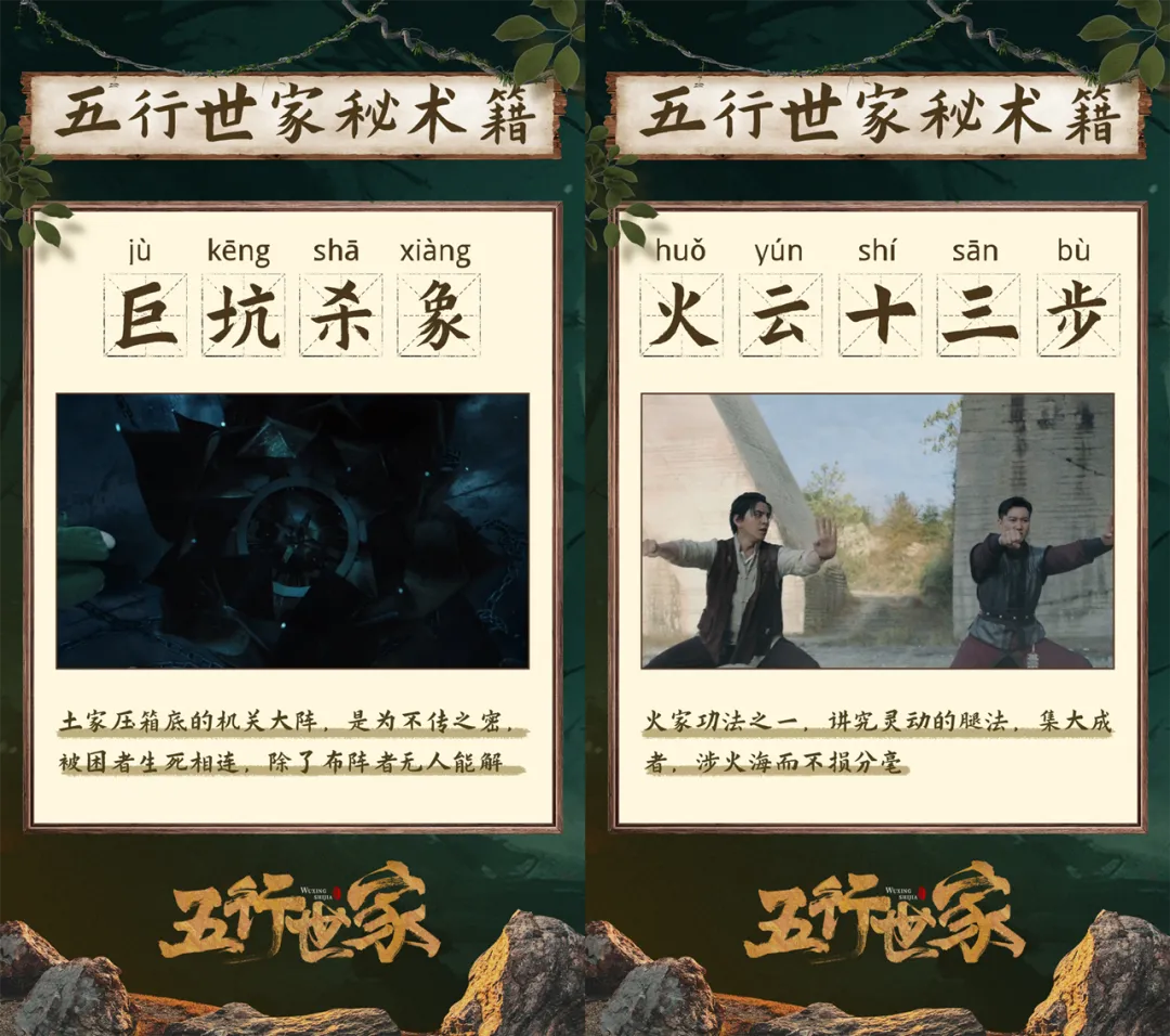 《五行世家》则有一个类似于奇幻剧的世界观。剧中以金、木、水、火、土五大元素划分家族和武功传承,火家擅攻、水家以柔克刚、土家擅长机关术、木家从医道……