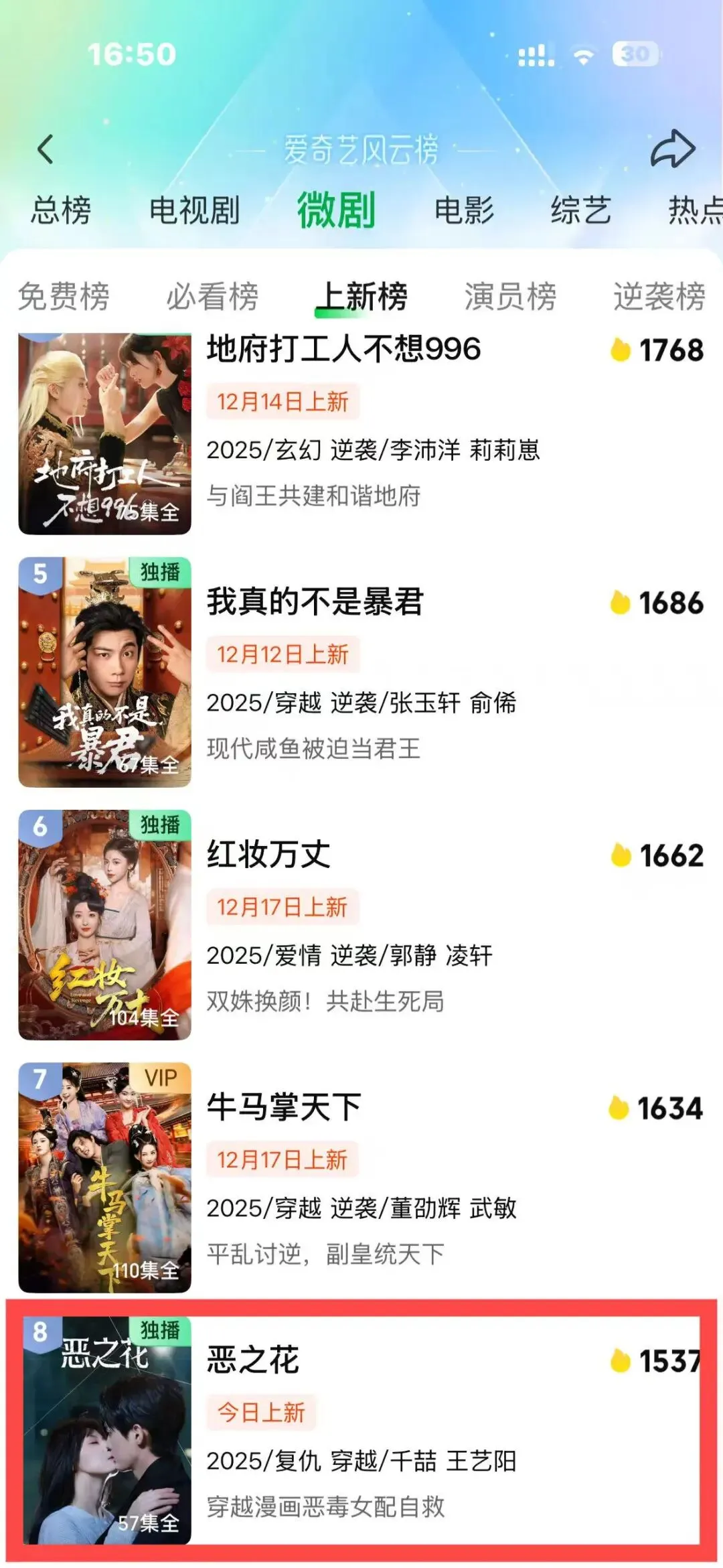 上新榜前十
