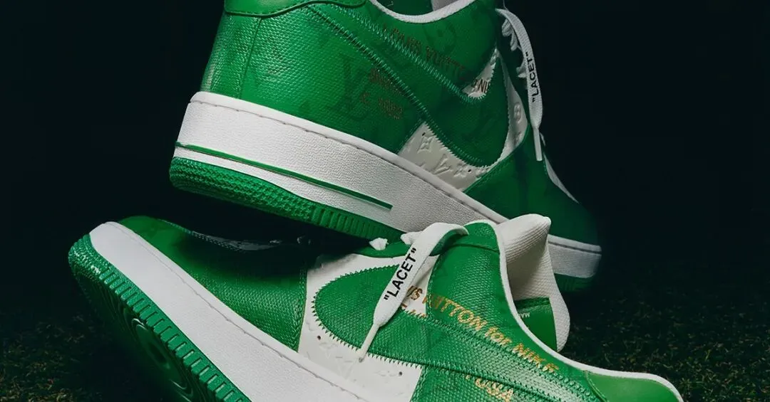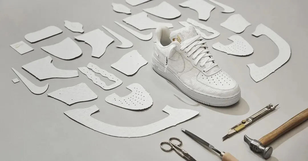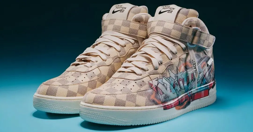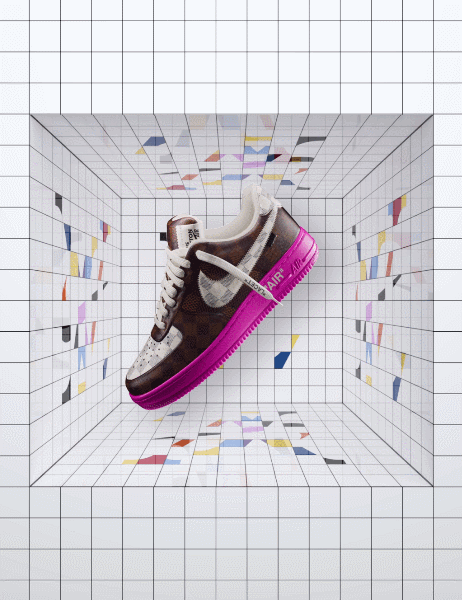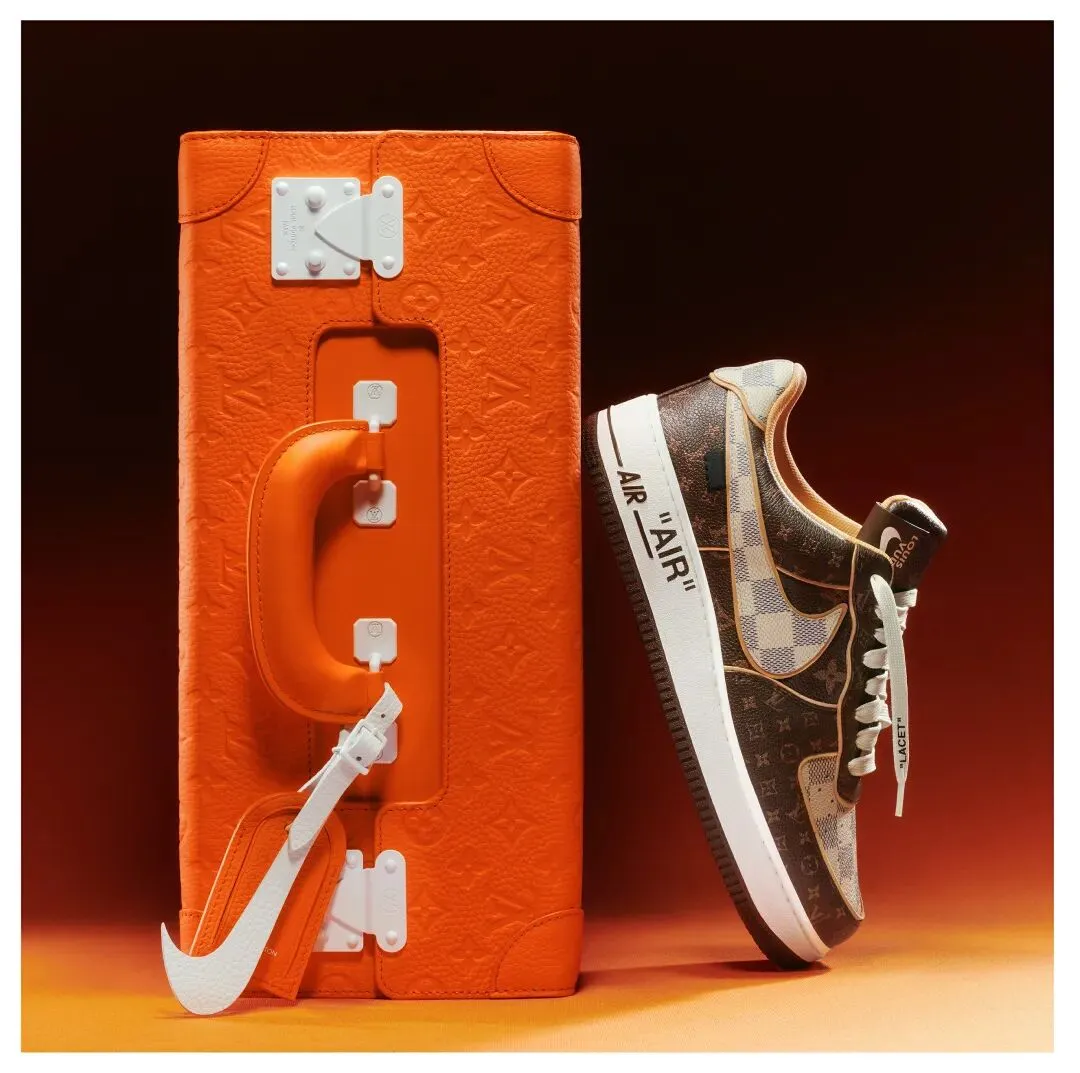 (由 Virgil Abloh 设计的路易威登与耐克联名“空军1号”球鞋苏富比拍卖款)