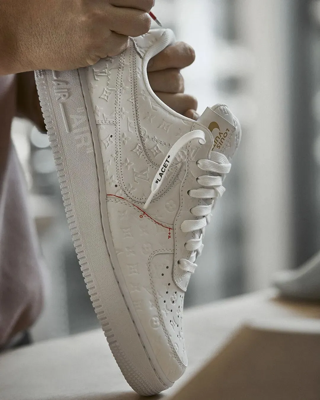 而将目光转向此次的“主角”——路易威登与耐克联名空军1号球鞋系列,在 Virgil 的球鞋创意加成之余,路易威登亦坚持其对于球鞋品质的把控,每一双球鞋均由品牌位于意大利威尼斯的 Fiesso d’Artico 制鞋工坊打造,质感上乘的小牛皮材质和浮雕感亚纹令其高级感立现。正式公开的 47 款球鞋都独一无二,其中 9 款不同配色将在 6 月通过线上官方平台发售。