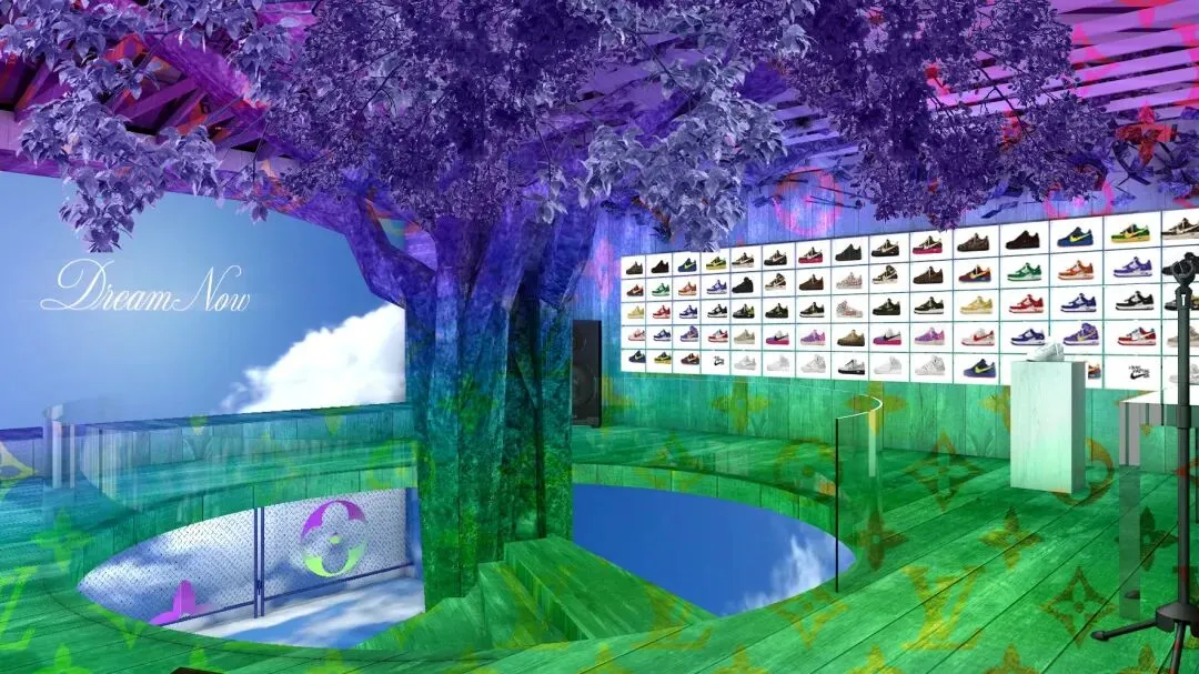 路易威登与耐克联名空军1号球鞋主题展览中,巨型标识在镜面天花板中随处可见。遍布展馆的耐克空军一号3D打印雕像旨在致敬 Virgil Abloh 在路易威登任职期间创作的雕像作品;城市上空建造的树屋旨在向 Virgil Abloh 所喜爱的童心致敬。更令人位置眼前一亮的则是树屋的内部精准地还原了位于巴黎 Rue du Pont-Neuf 的路易威登工作室及其内部空间。倘若你无法亲自到场感受 Virgil 同 LOUIS VUTTION 、耐克共同创造的球鞋美学,那么不妨点击下方小程序,进行一次全新的线上“云逛展”体验。