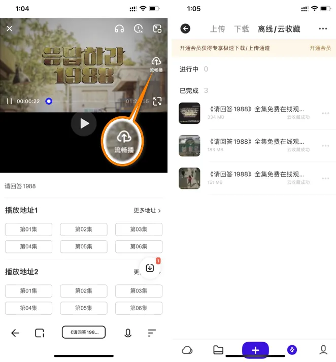 当然iPhone用户也可以点击视频播放页面的流畅播,直接把视频保存到夸克网盘。