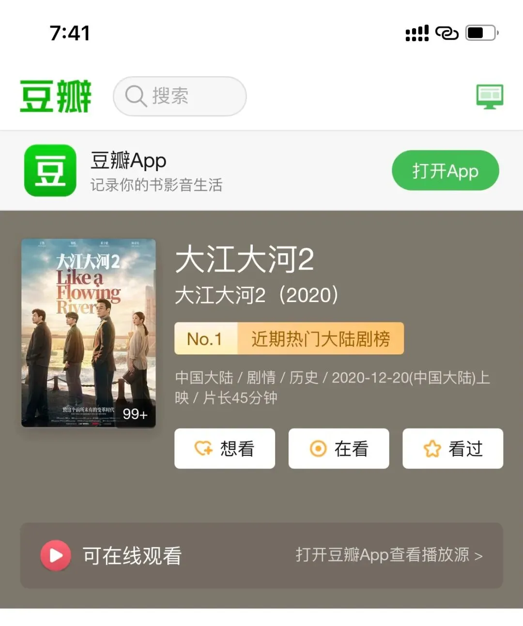 比如输入最近很火的大江大河2电视剧后可以直接选择用豆瓣搜索,查看评分和简介。