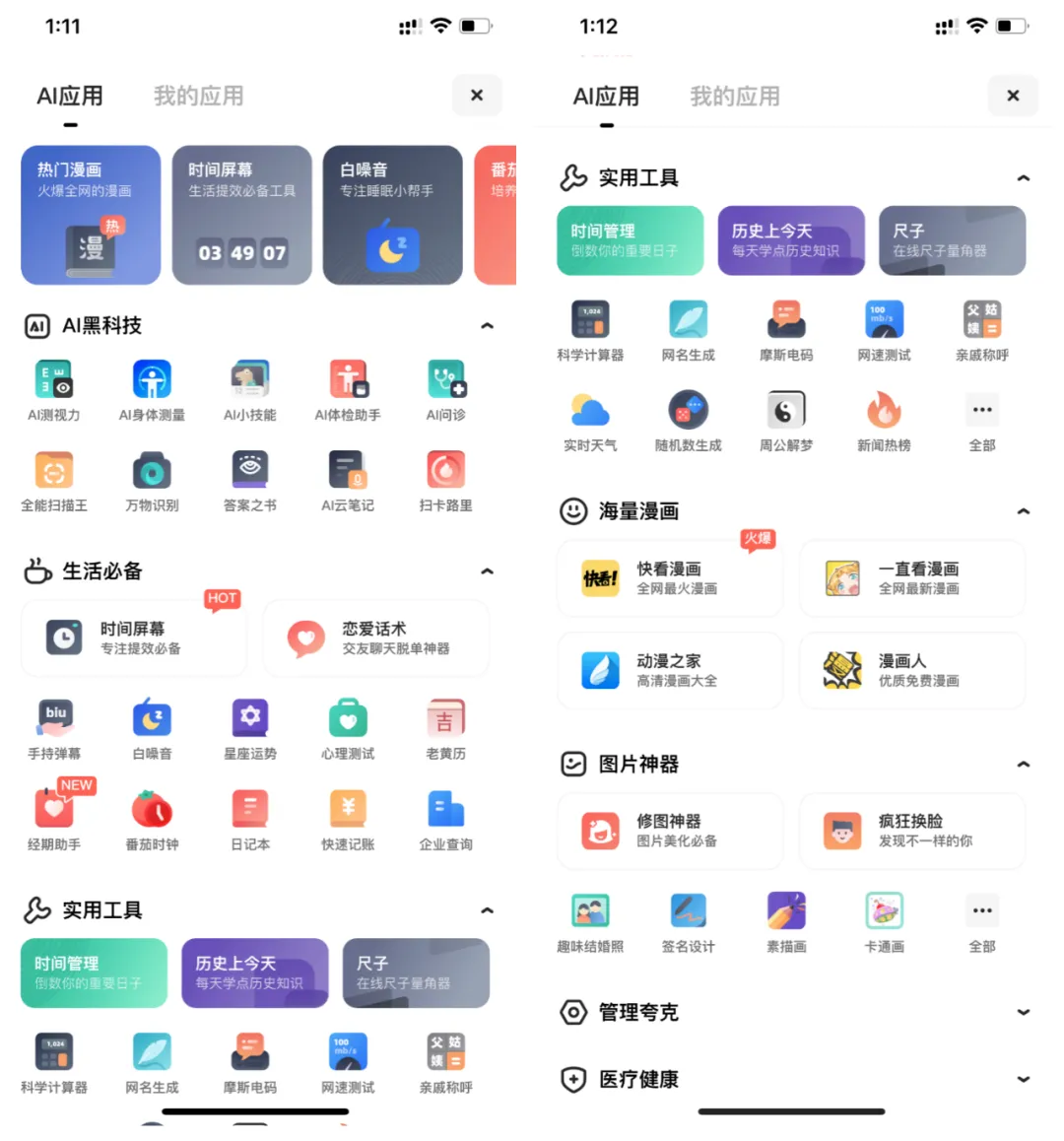 很多之前需要单独下载应用才有的功能都能在这里找到,相当于一个万能工具箱。可以少安装很多其它的应用,给手机节省空间。