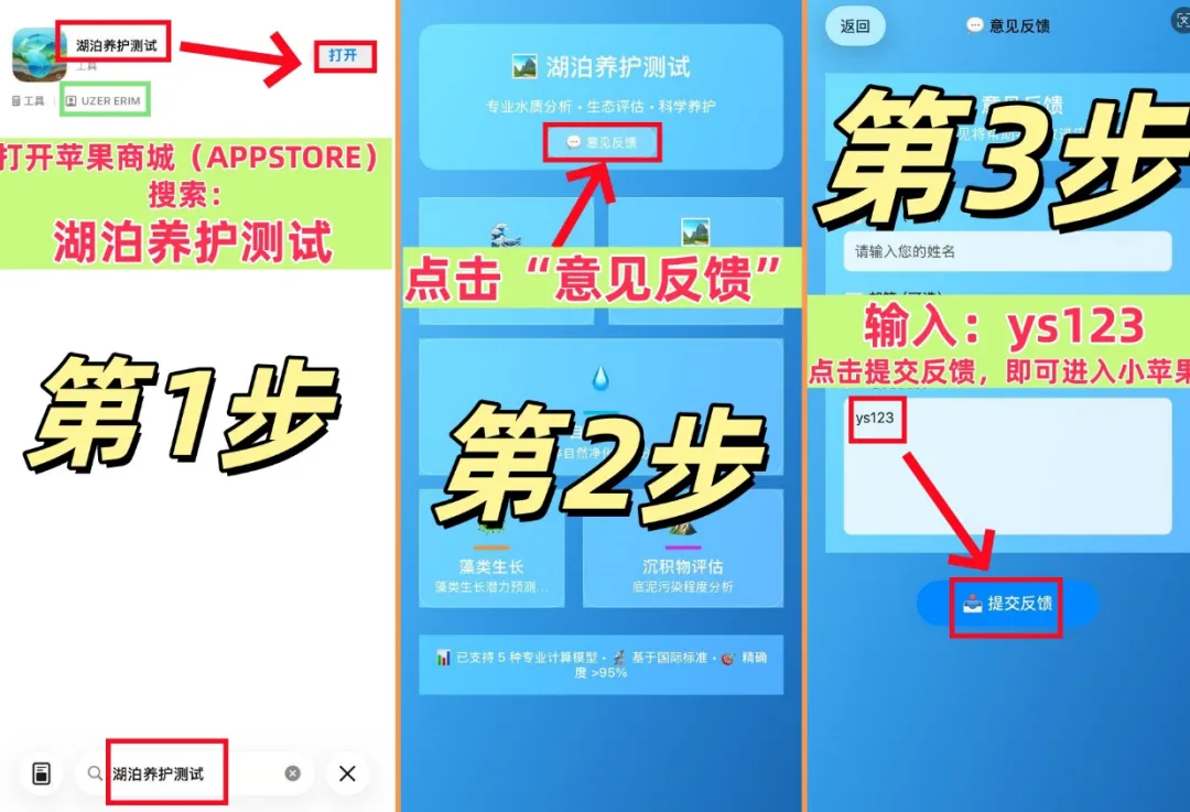 在【问题反馈】中输入“ys123”并提交反馈,显示“提交成功”即可进入小苹果。
