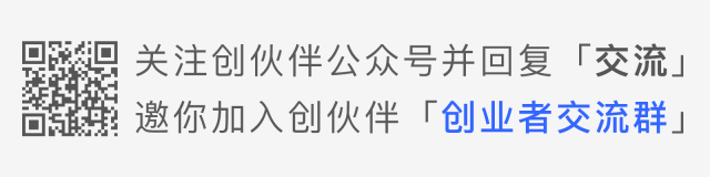 关注「创伙伴」公众号,回复“交流”,加入「创业交流群」。