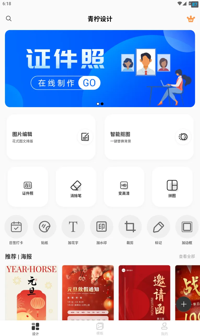 安卓软件:一款证件 海报 H5制作 可无水印保存的设计软件 无限制