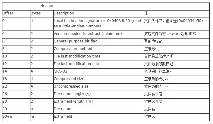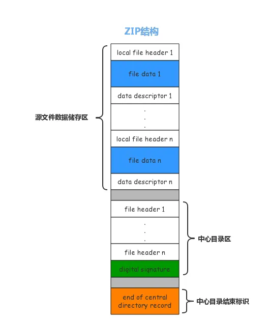 zip文件是比较常见的压缩文件,我们先来看一下zip文件的基本结构图: